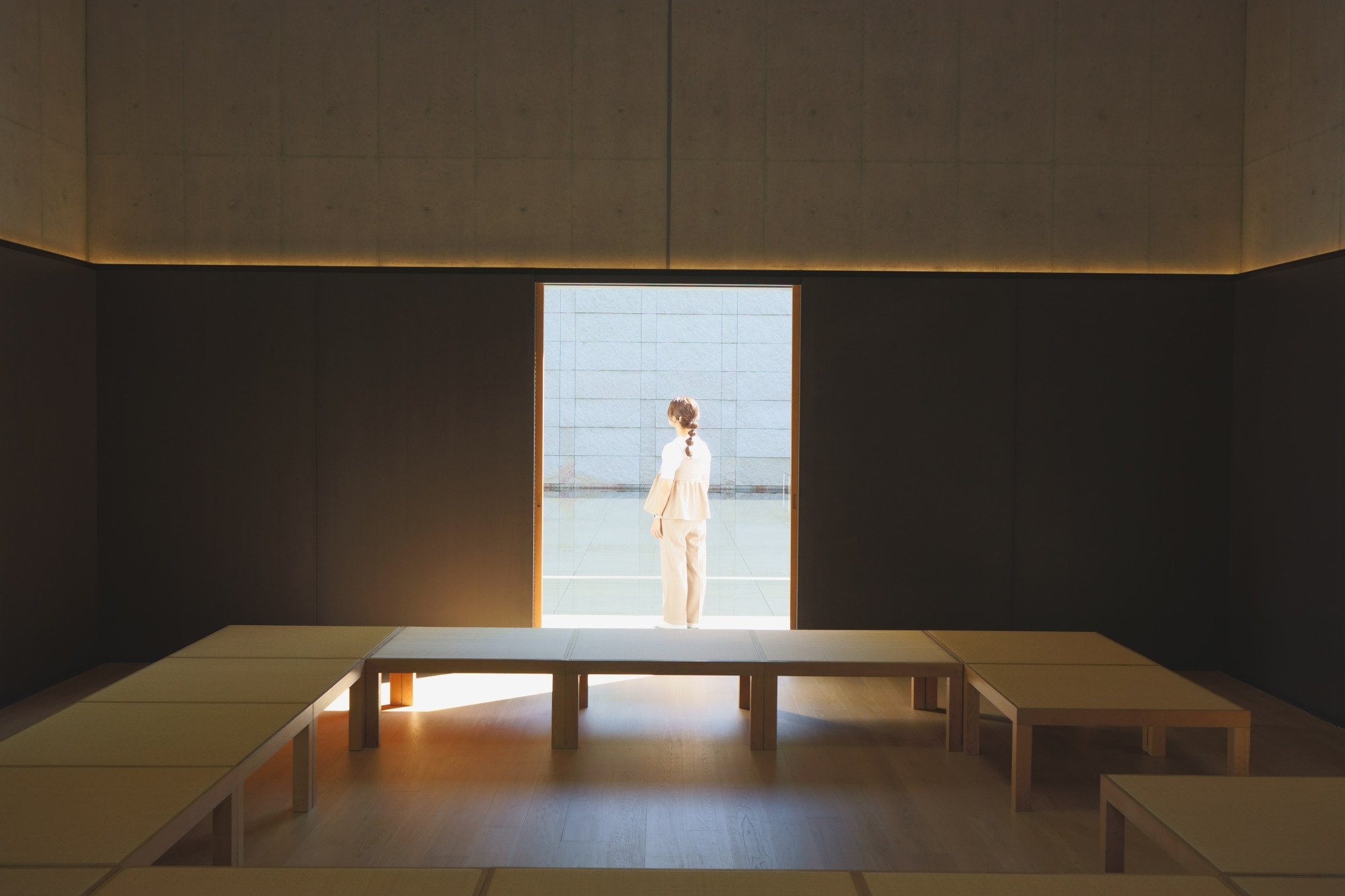 もともと静かなエリアですが、より静寂を感じられるのが朝です。そんな時間を過ごすことができるイベントが「朝・思索のすゝめ」。開館前の「思索空間」「外部回廊」が開放され、自由に過ごすことができるというもの。