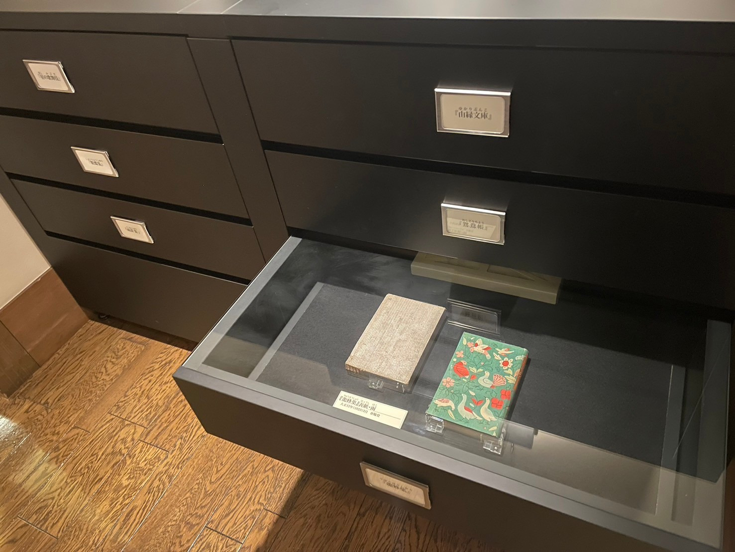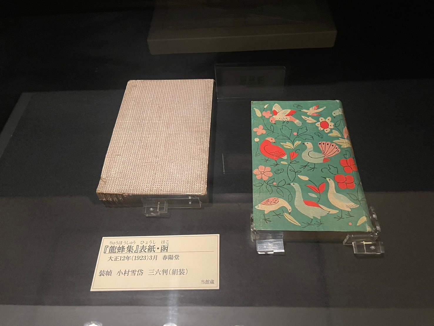 鏡花本の装丁を最も多く手掛けたのが、日本画家の小村雪岱(こむらせったい)。このコーナーには、とても貴重な初版本がいくつも展示されています。レトロモダンな装丁は、現代人が見ても心惹かれるデザインです。