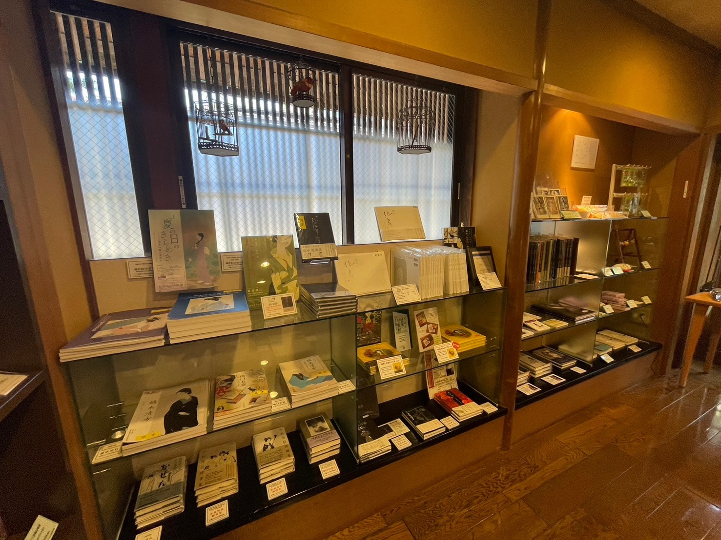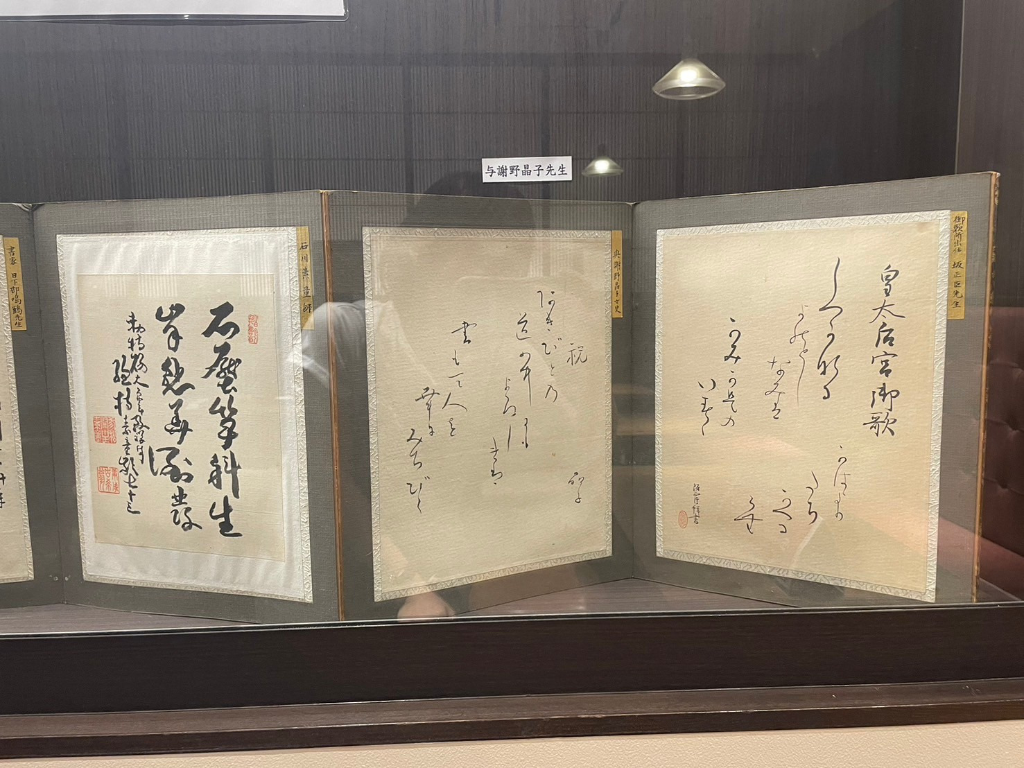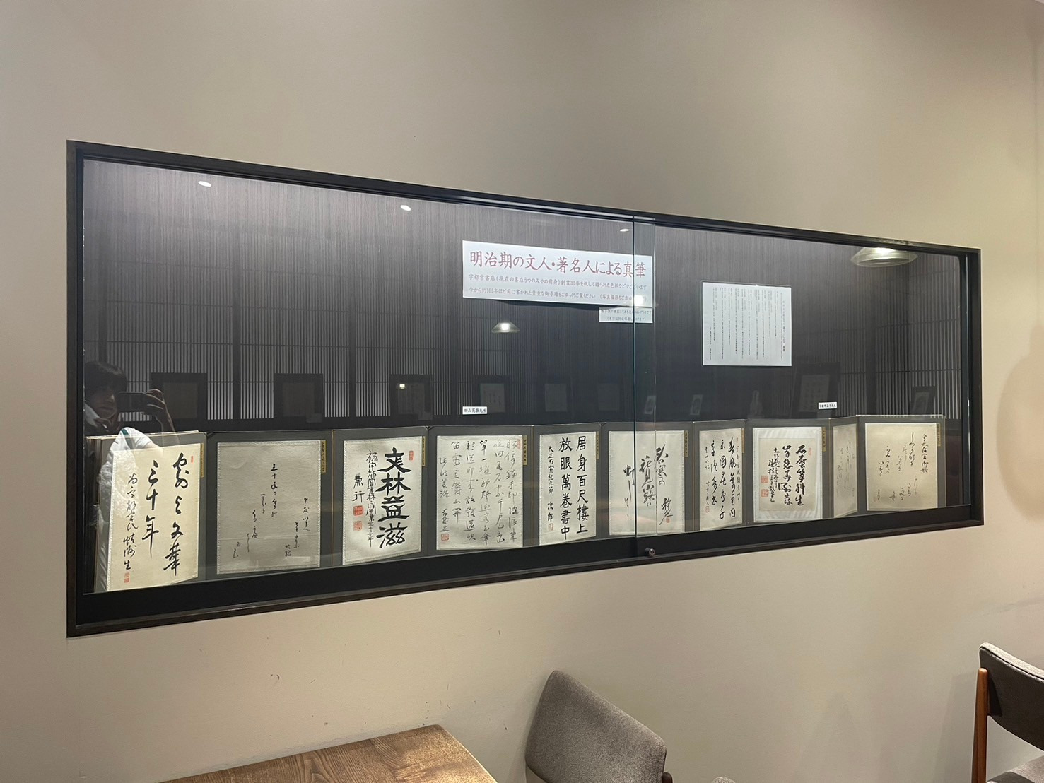 店内ショーケースの中には、与謝野晶子や坂正臣など、著名作家の直筆サインが展示されています。