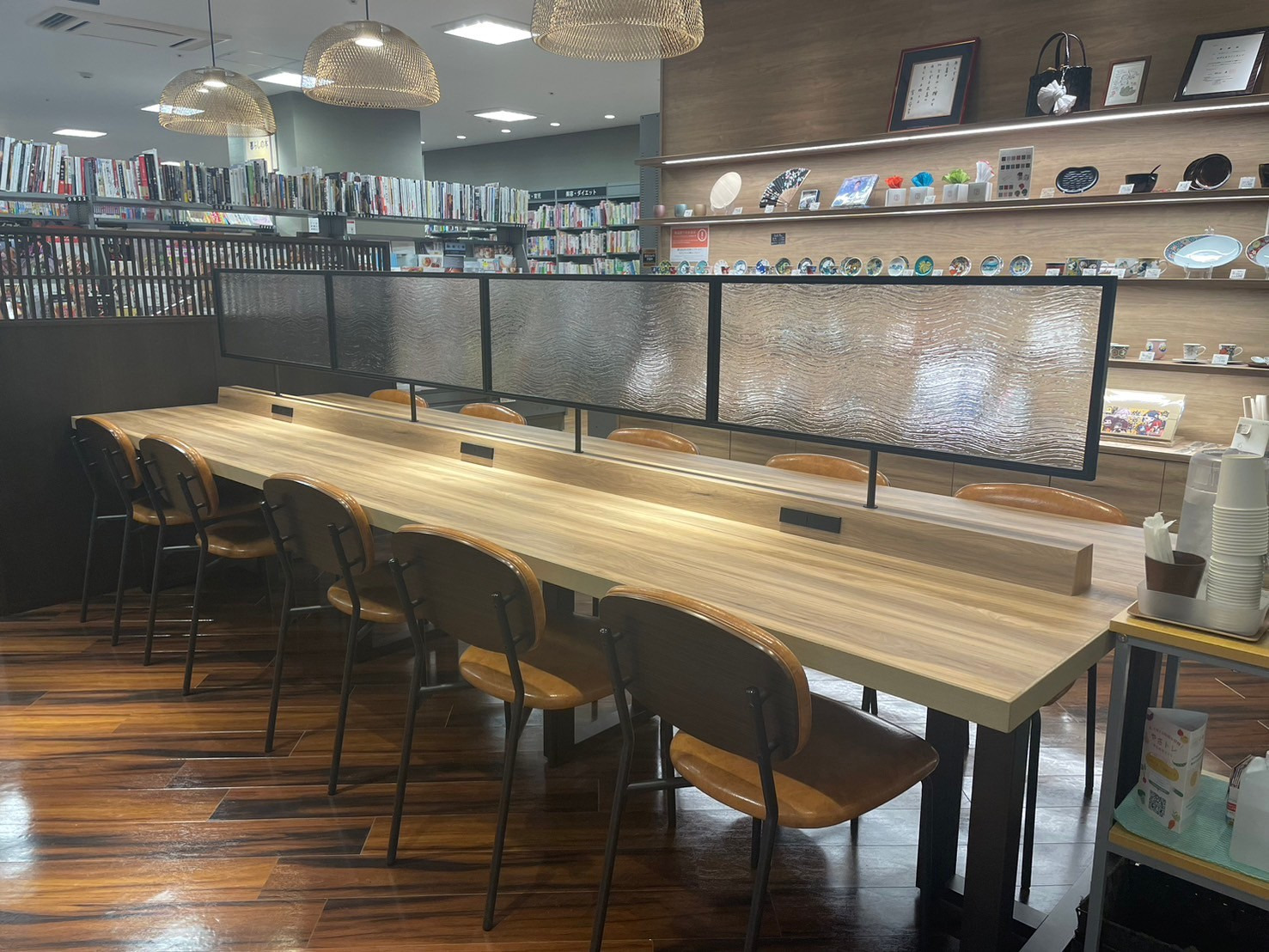 照明の明るさが異なっており、カウンター席は調べものや勉強などに適した明るさ、テーブル席は読書などに適した明るさに設定されています。