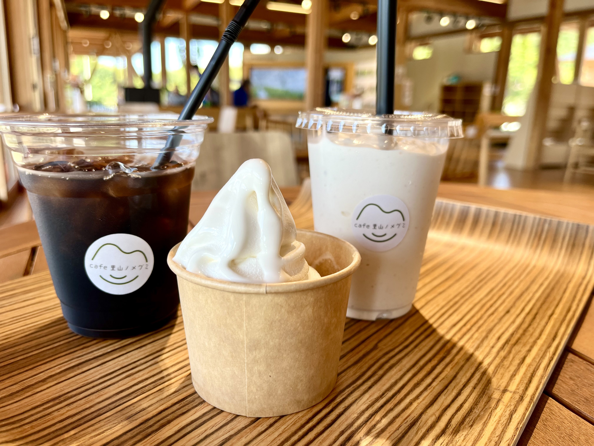 cafe 里山ノメグミでは、憩いの場にある県内産で作られたドリンクや、フードを提供。