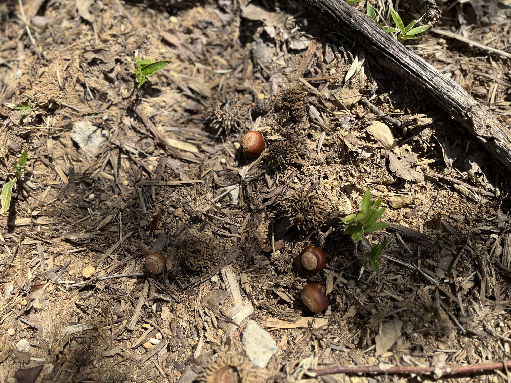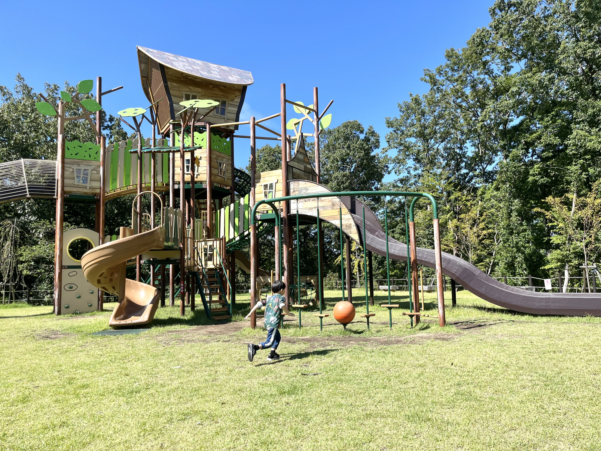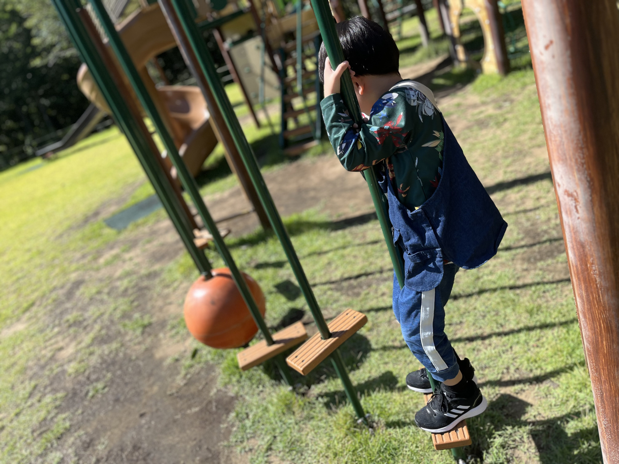 樹木遊具への道もルートは同じなので、一緒に歩いても遠く感じません。道の途中にあるどんぐり、木の枝など新たな発見を感じながら歩いてみてくださいね。