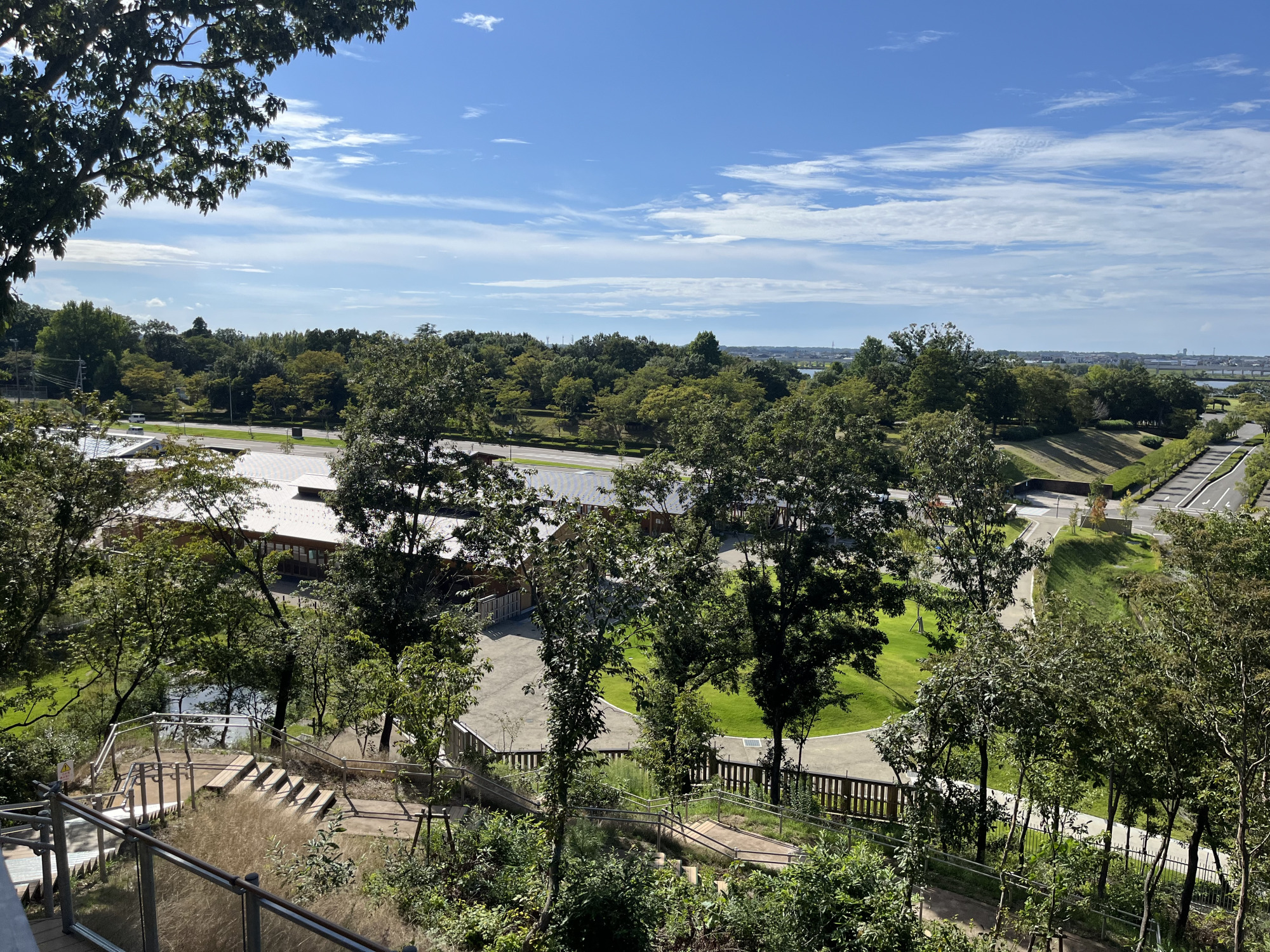 東園地展望デッキから見える「中央園地」にも展望デッキ、遊具、ドッグランなどがあります。