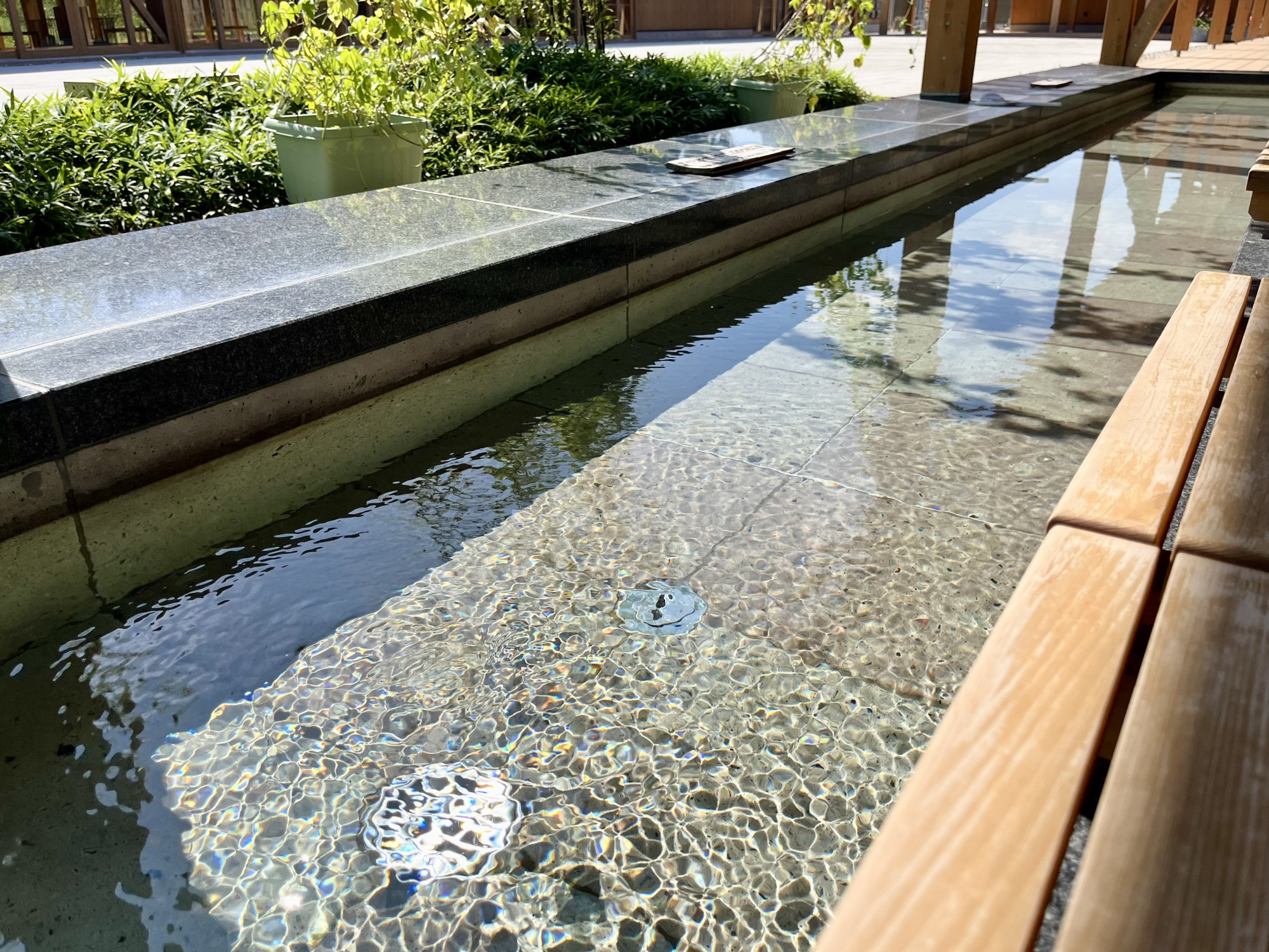 座るスペースがしっかり確保できていて、熱すぎない40°くらいのお湯が足元を癒してくれますよ♪(タオルの持参も忘れずに!!)