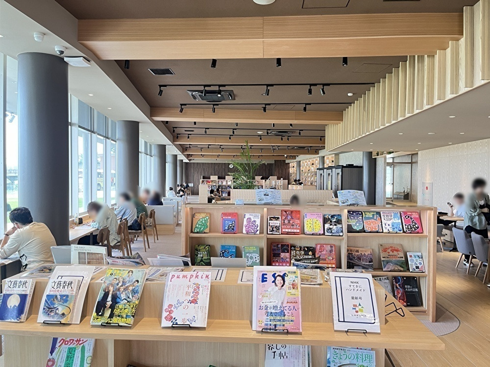 ドトールコーヒーの先には、本棚が並んでおり、雑誌や絵本、専門誌など大人から子どもまで手に取りたくなるジャンルの本が陳列されています。(図書館のように本は貸し出していません)