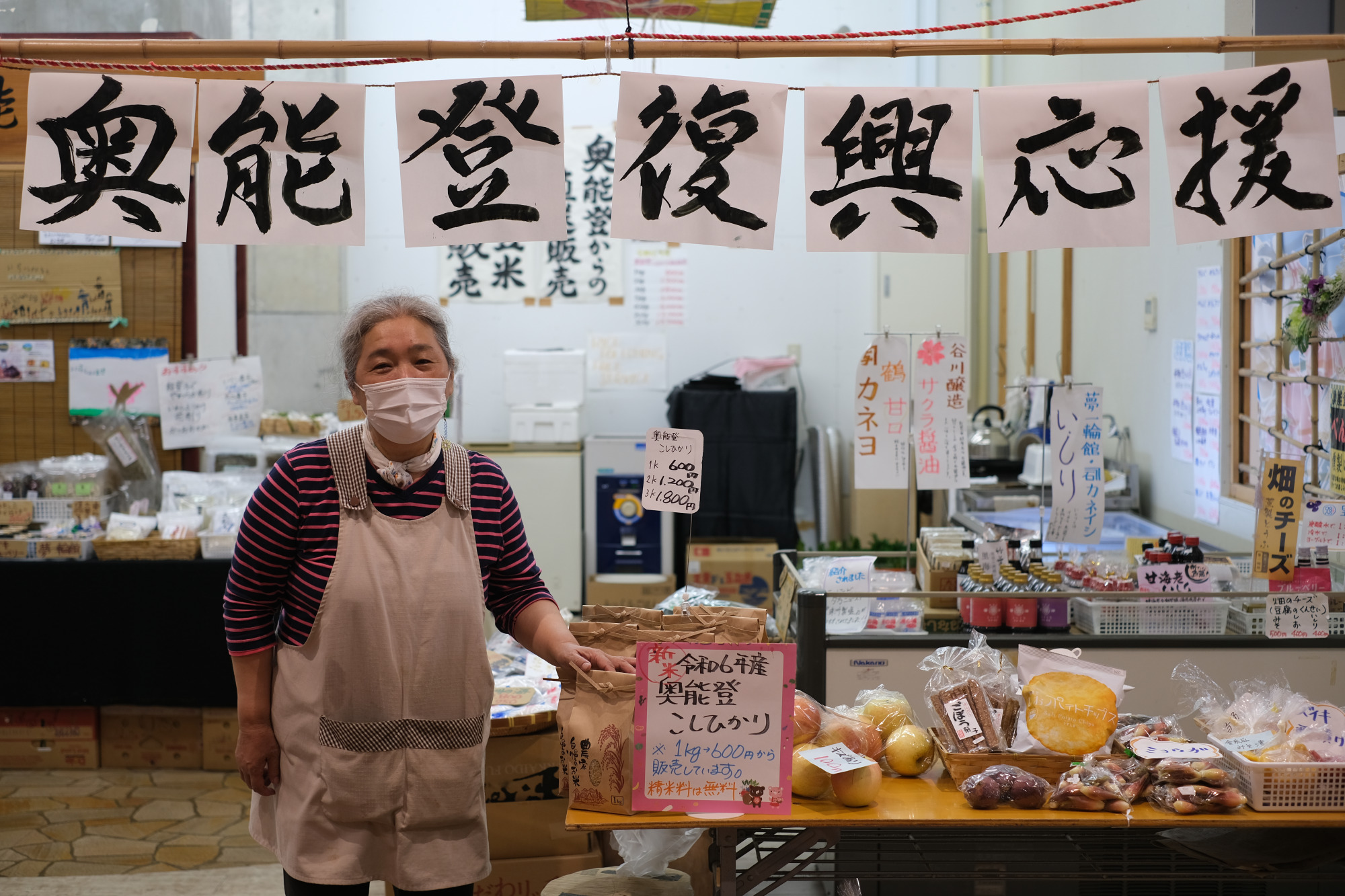 近江町市場全体でも震災直後から義援金箱を設置したり、各種イベントを開催したり、ずっと能登を応援しています。