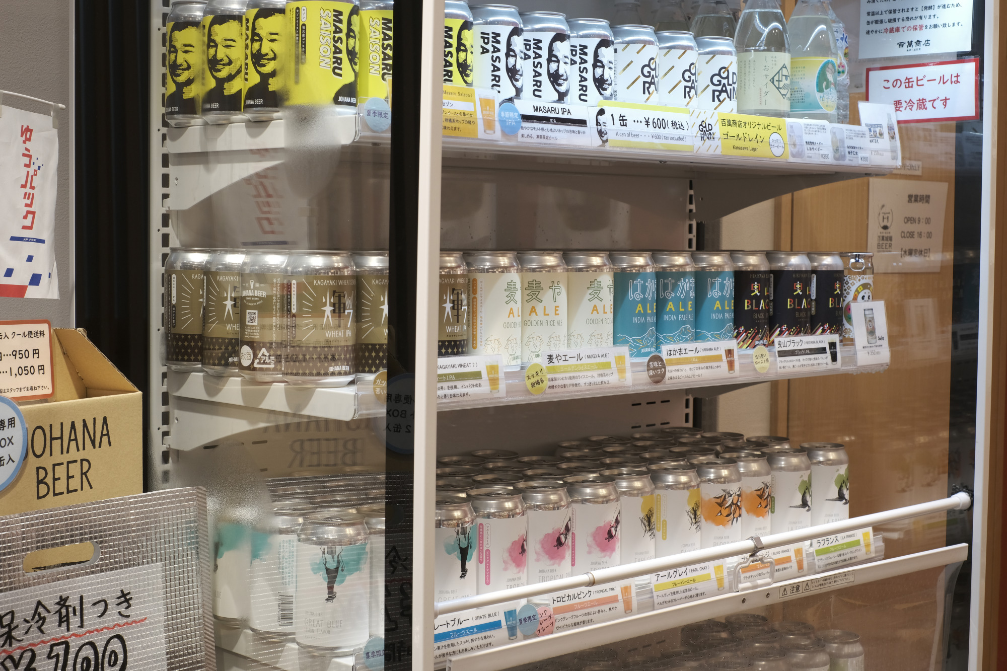 近江町市場の中でも一際おしゃれな佇まいの百萬商店さん。店頭のビアスタンドでは、工場直送の樽生クラフトビールも販売しています。石川県観光PRマスコットキャラクターの「ひゃくまんさん」グッズやオリジナル商品も人気です。店内の食品や雑貨のひとつひとつもこだわりのラインナップで、キラリと光るお土産が見つけられますよ!