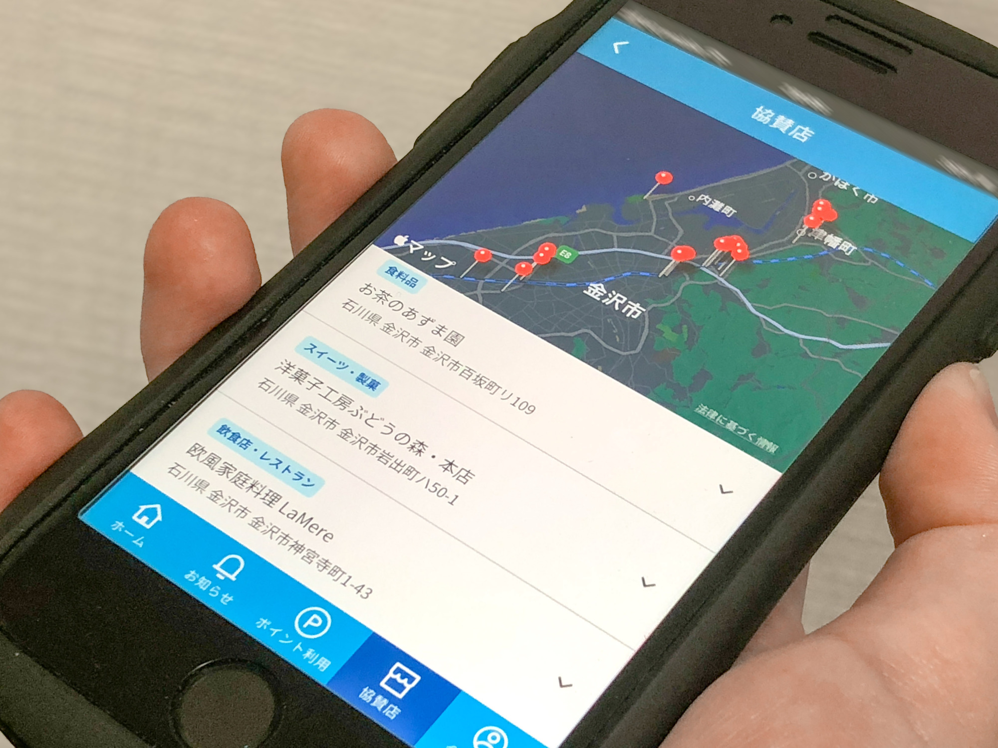 特典の内容は、店舗によって変わるので、お楽しみ…。アプリから、協賛店や特典内容の確認もできますよ。
