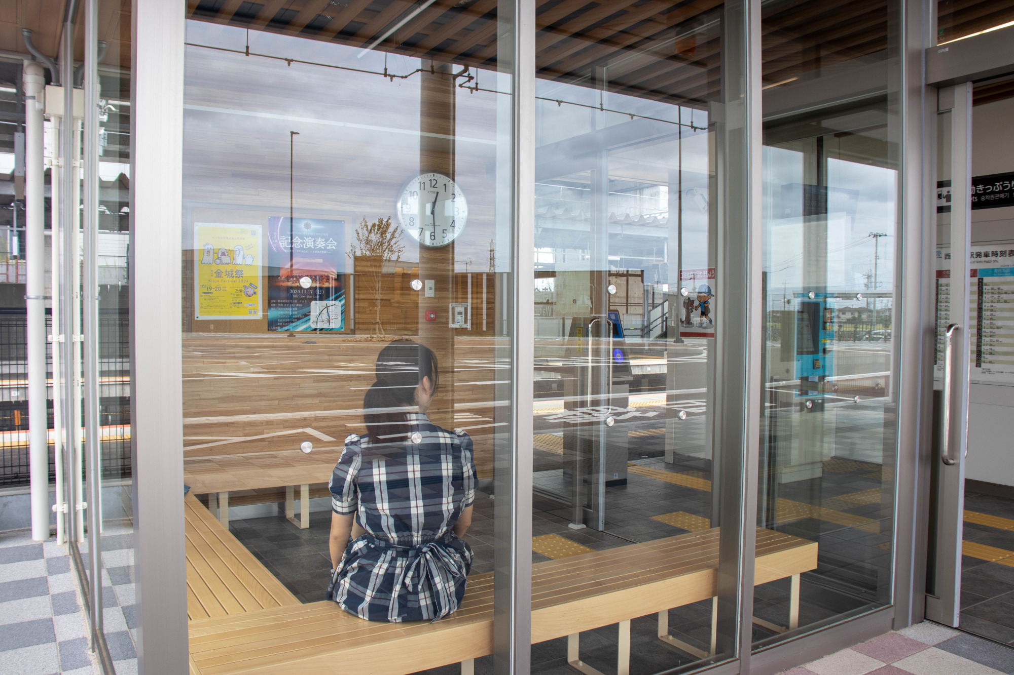 待合室は全面ガラス張りです。木の椅子で温かみを感じながら、ゆったりとした時間を過ごすことができます。