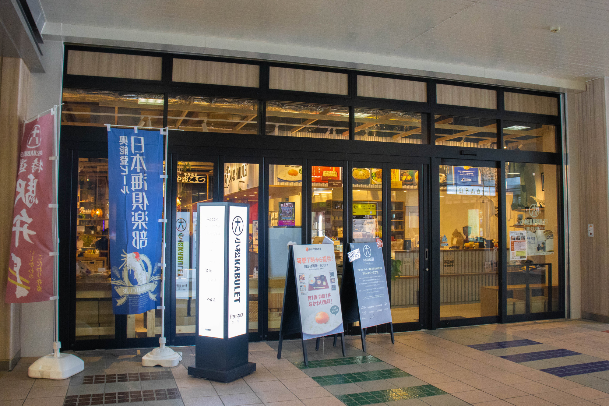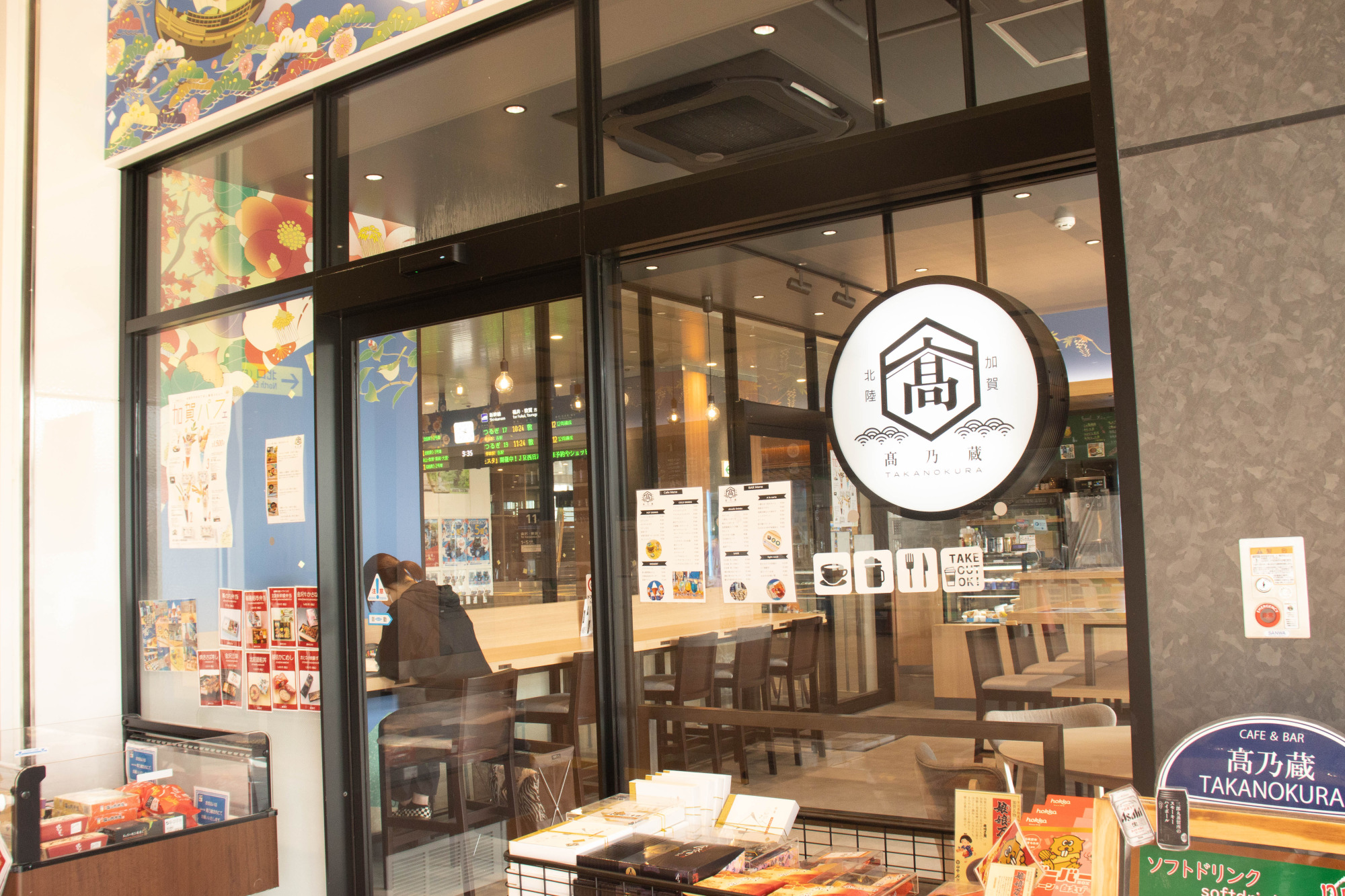駅構内にはごはん屋さんやお土産屋さん、カフェがずらりと並んでいます。お腹が空いたとき、ふらっと気軽に立ち寄ることができます。お神輿や、有名な「勧進帳」の像があり、この地で刻まれた歴史が感じられるようになっています。