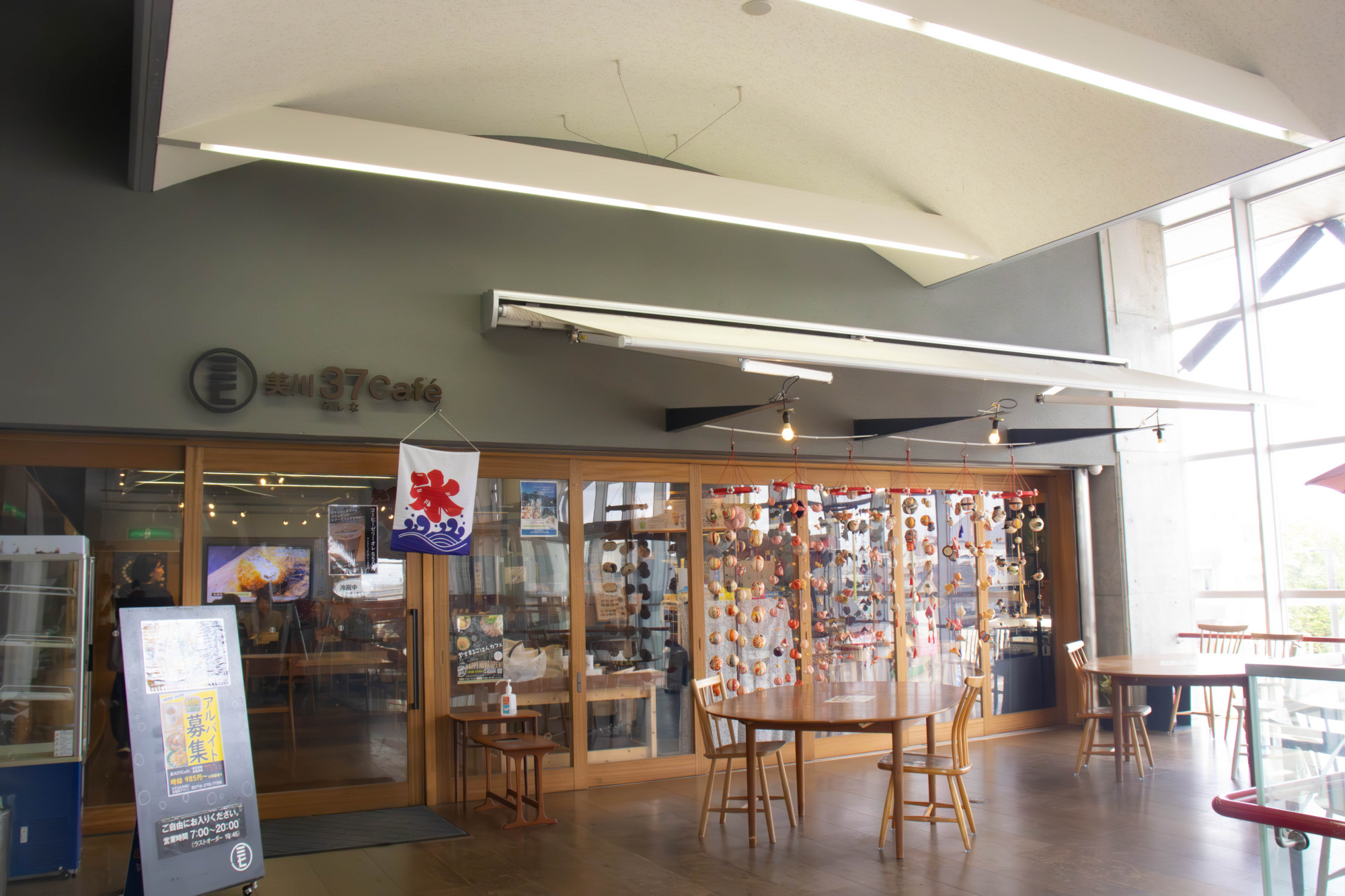 コンクリート打ちっぱなしのデザインですが、窓から光が適度に入り込んでくるので、暗さを感じることはありません。駅構内にはおしゃれなカフェもありますよ。