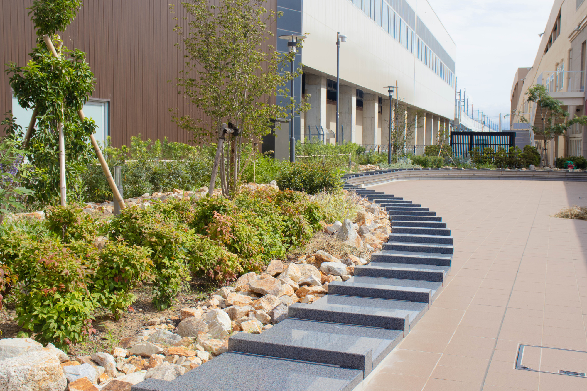 外に出ると石造りのベンチが並んでおり、思わず座りたくなってしまいます。