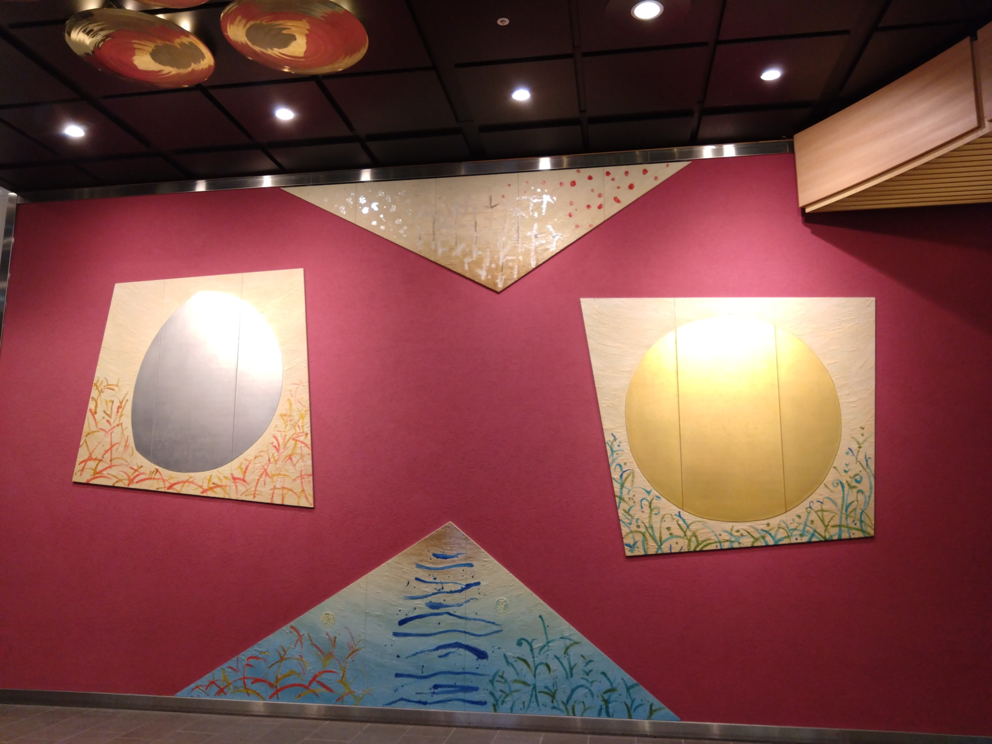 梅の形は、前田家の家紋「加賀梅鉢」をイメージしています。金色が豪華絢爛さを醸し出していました。駅を歩くだけで心が躍ります!