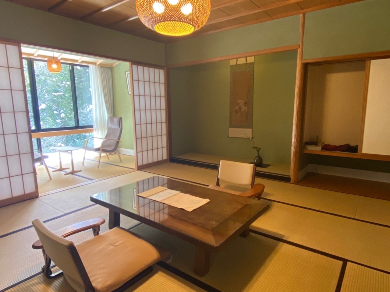 窓から見える景色は、山の緑や川のせせらぎなどの自然。窓いっぱいの緑で、本当にリラックスできます。
