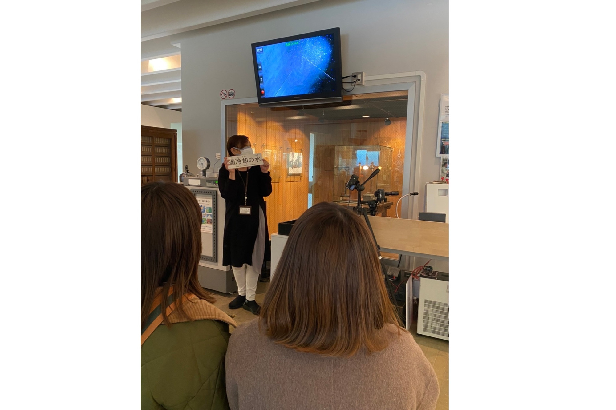 冷凍庫の中で、ダイヤモンドダスト(氷晶)を見ることができました!シャボン膜でつかまえたダイヤモンドダストはきれいな六⾓形♪また、過冷却の⽔の実験も一緒に行っていました!0℃以下になっても凍らない過冷却⽔の現象はとても不思議です。