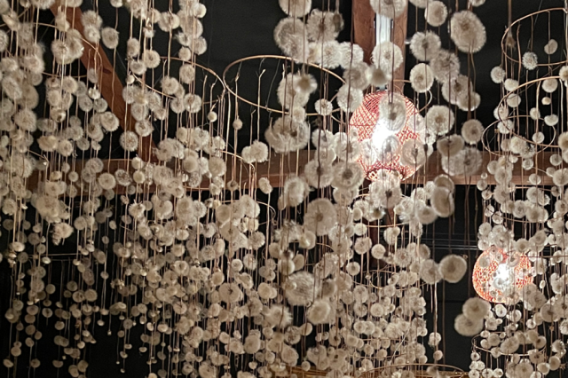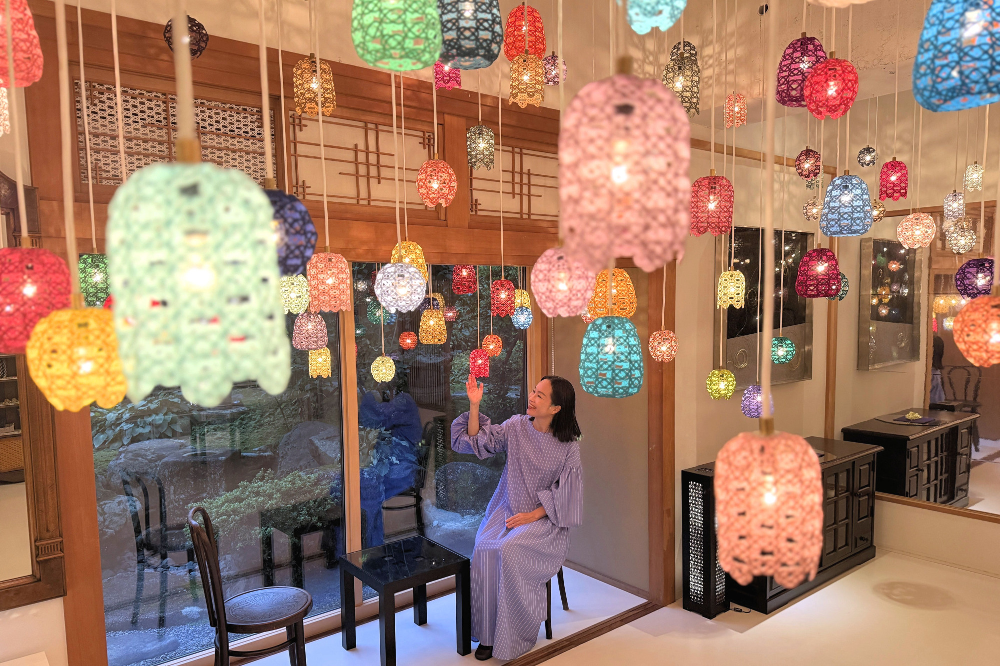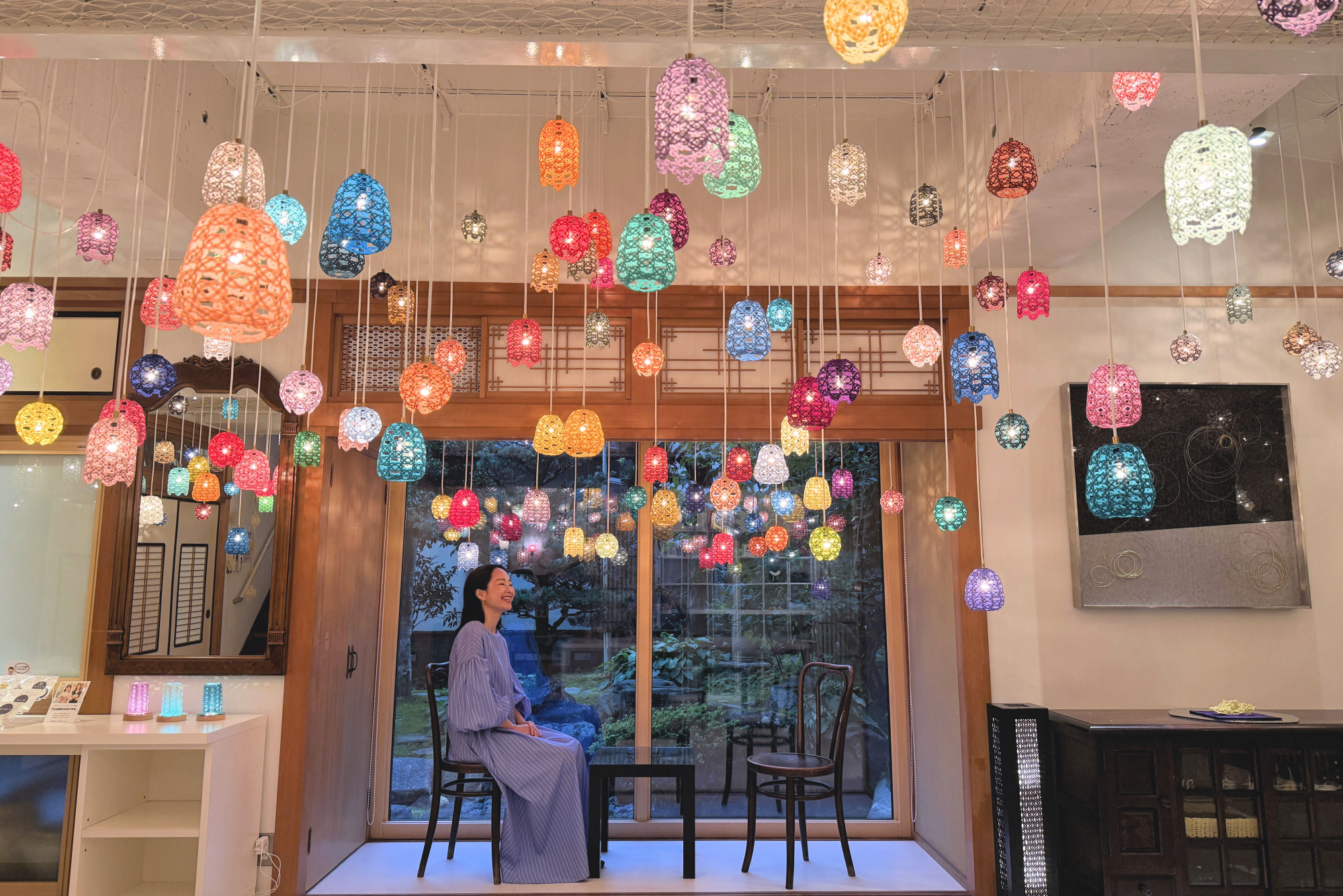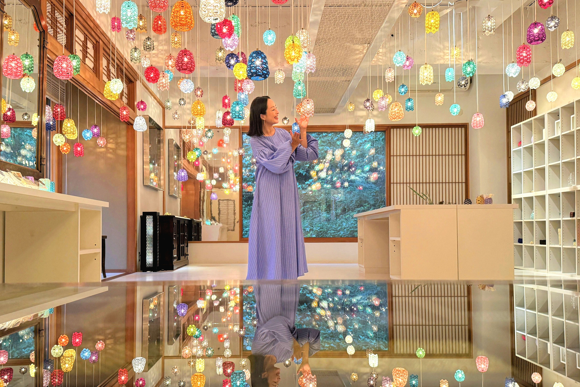 ここに来たらぜひ撮って欲しいのが、机に反射させて撮るリフレクションショット。まるで空間全体が水引のランプシェードで埋め尽くされたかのような写真が撮れます♡撮影方法をスタッフの方が丁寧に教えてくれるのも嬉しいポイントです。