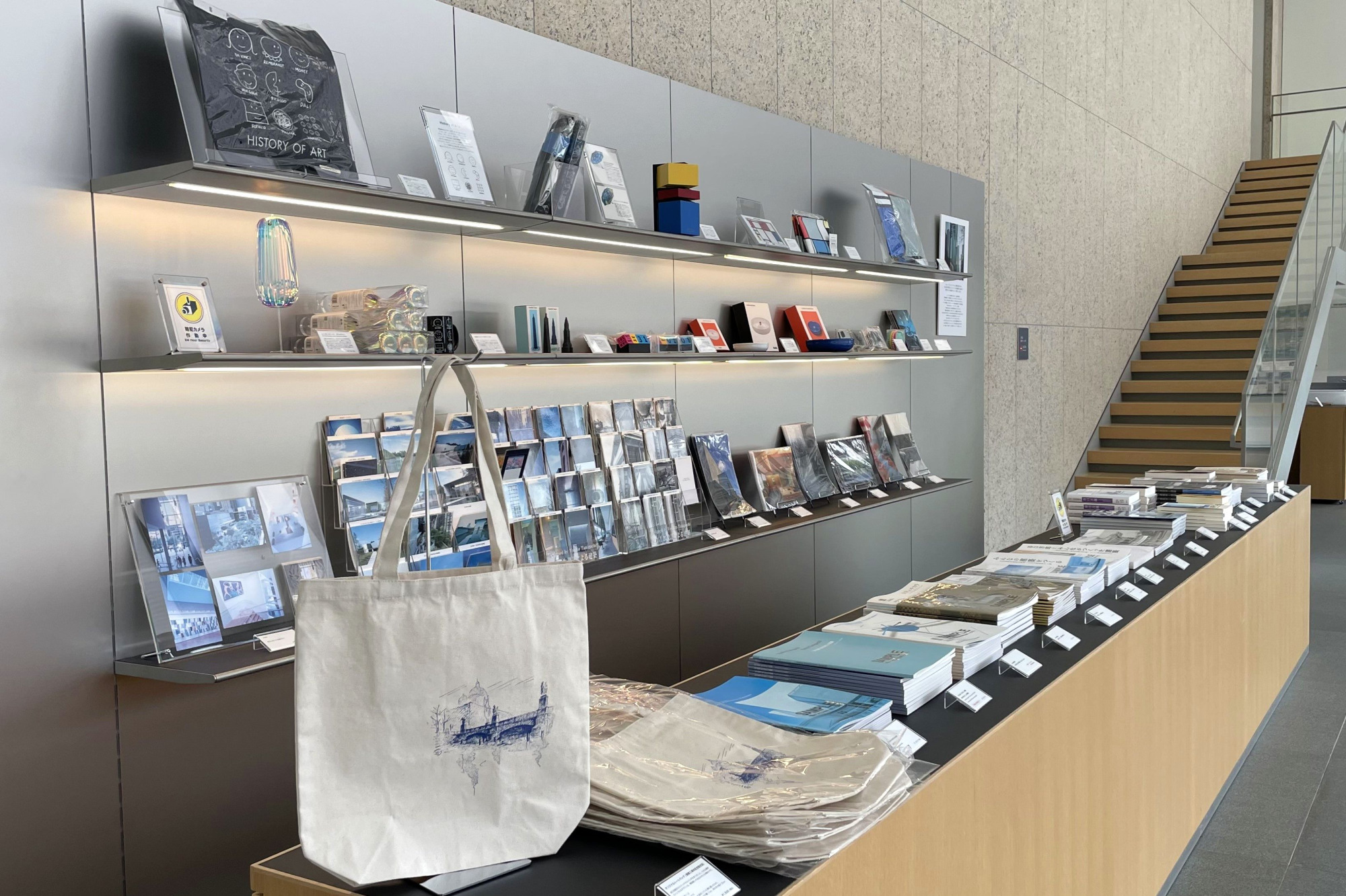 金沢建築館にはミュージアムショップもあります。オリジナルのトートバッグやポストカード、また建築館の設計者である谷口吉生氏が手掛けたニューヨーク近代美術館(MoMA)で販売されている限定グッズも置いてありますよ。