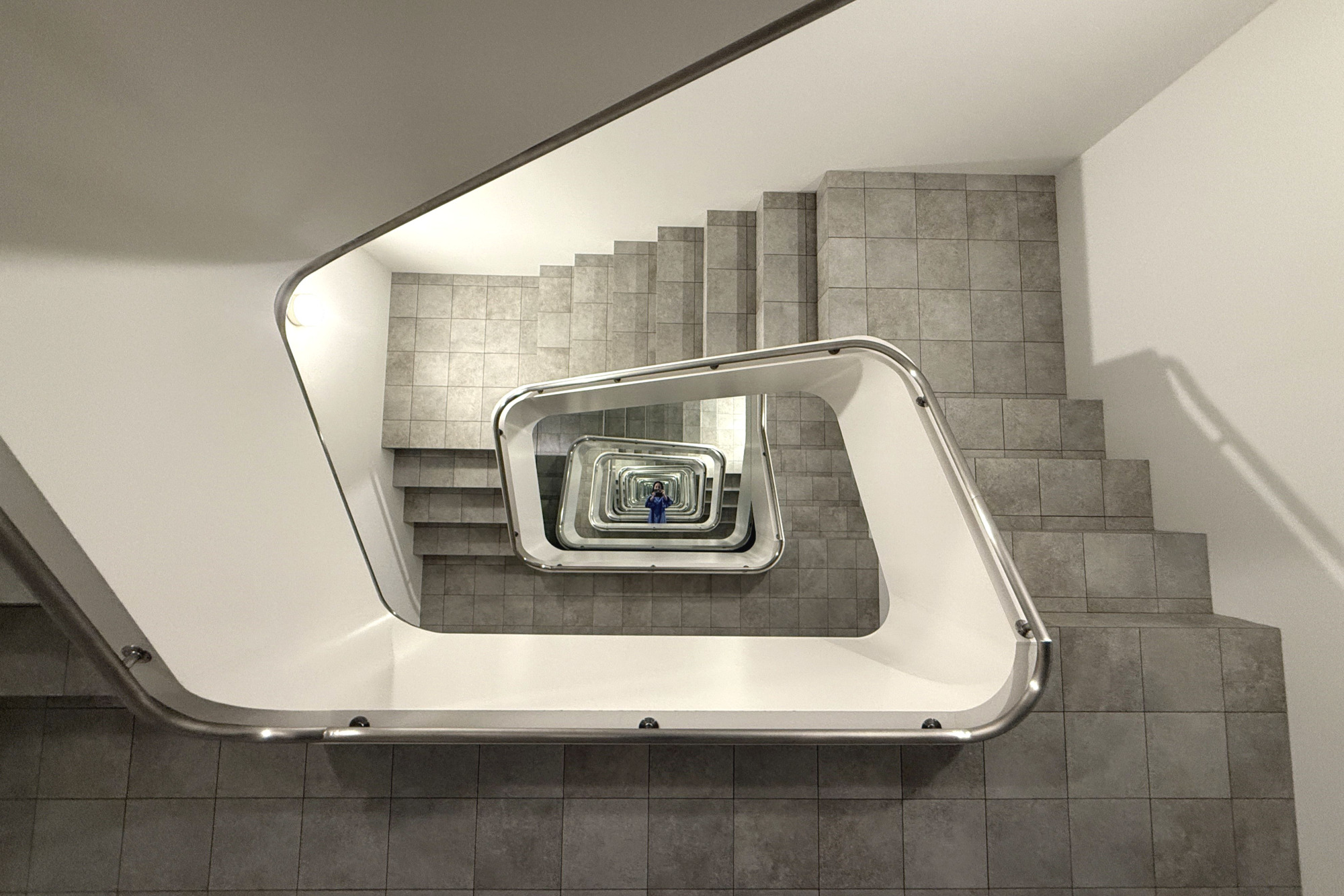 「KAMU kanazawa」の代表的な作品といえばこちら!レアンドロ・エルリッヒの作品《INFINITE STAIRCASE》です。金沢21世紀美術館のアイコン的作品《スイミング・プール》でも有名なエルリッヒの作品で、深淵へと続く螺旋階段の空間に吸い込まれていくような不思議な感覚におちいります。