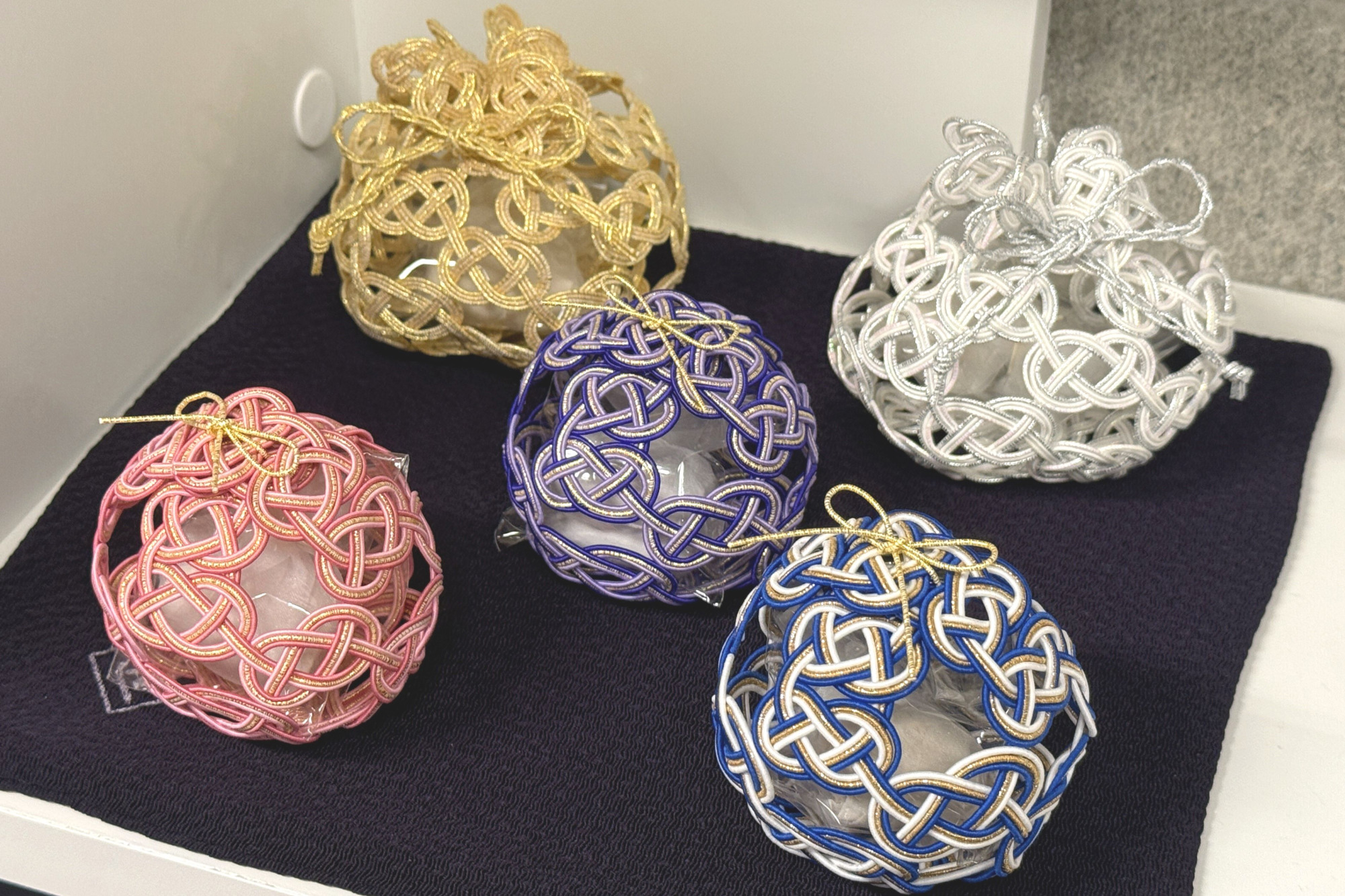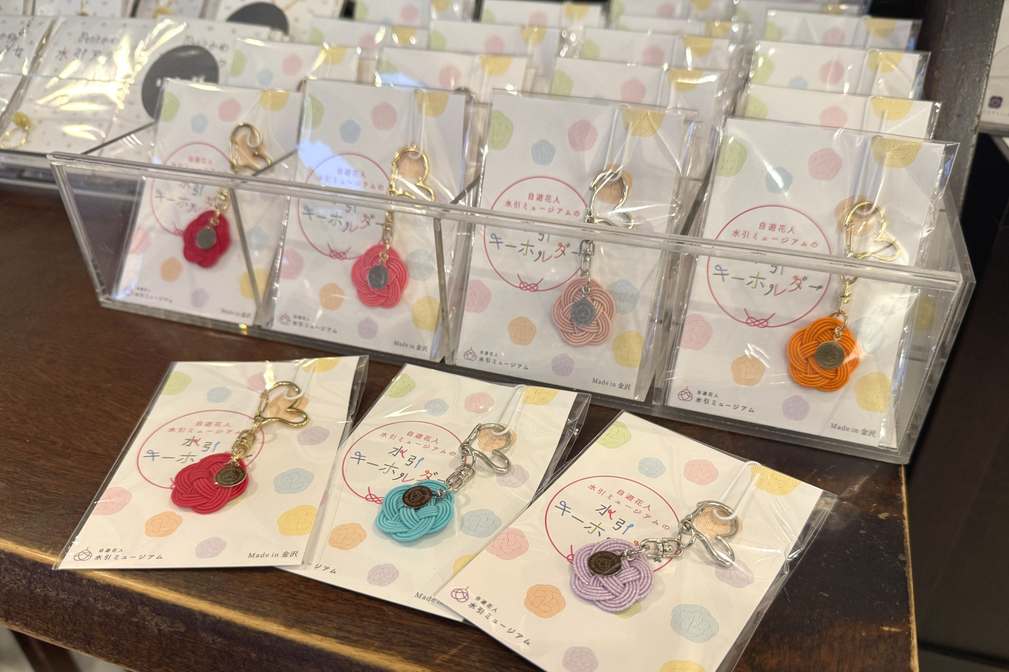 ミュージアム鑑賞の後は、オリジナルの水引のお土産を選ぶのも楽しみのひとつ♪キーホルダーやネックレス・インテリアグッズなど、どれも1つ1つ手作りされたものです。