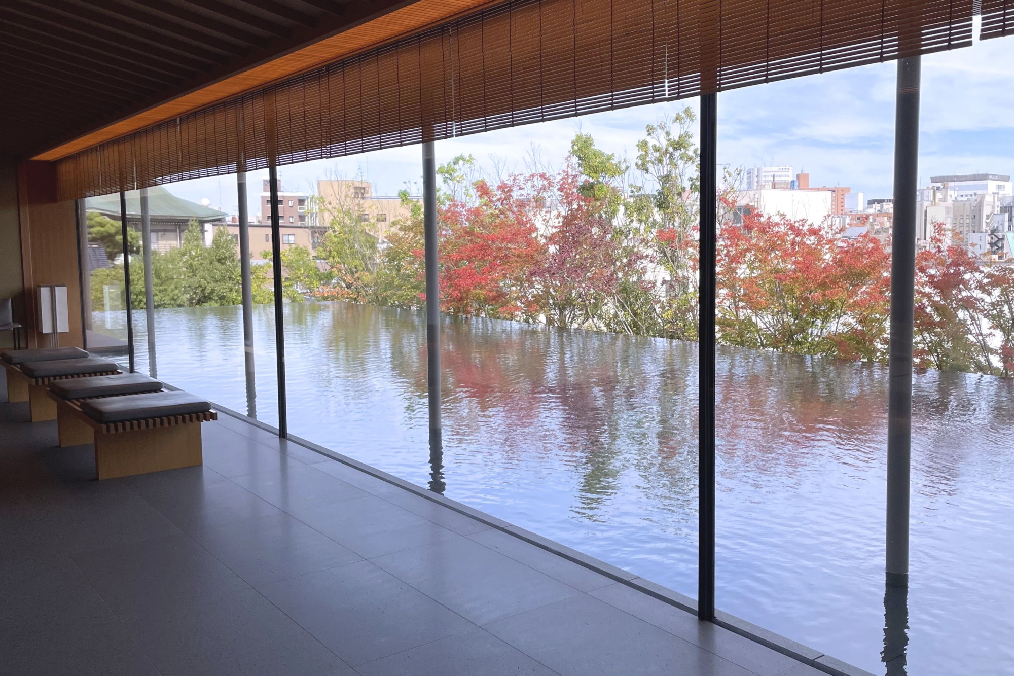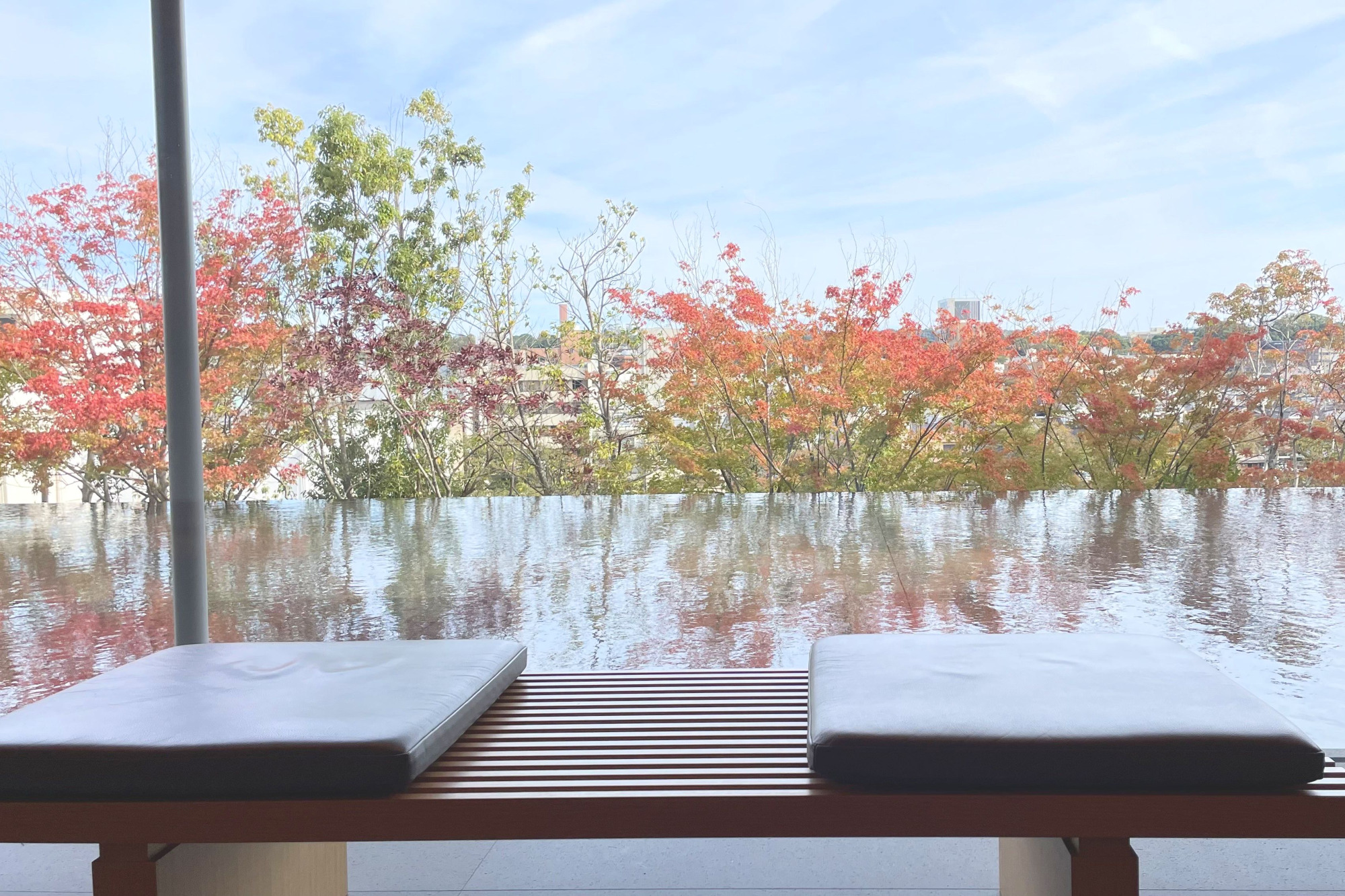 広間の前には写真映え抜群の水庭の景色が広がります!まるで美しい日本画の屏風のようで私も見とれてしまいました。天気の条件が良ければ、木々や青空が映える写真が撮れますよ♪