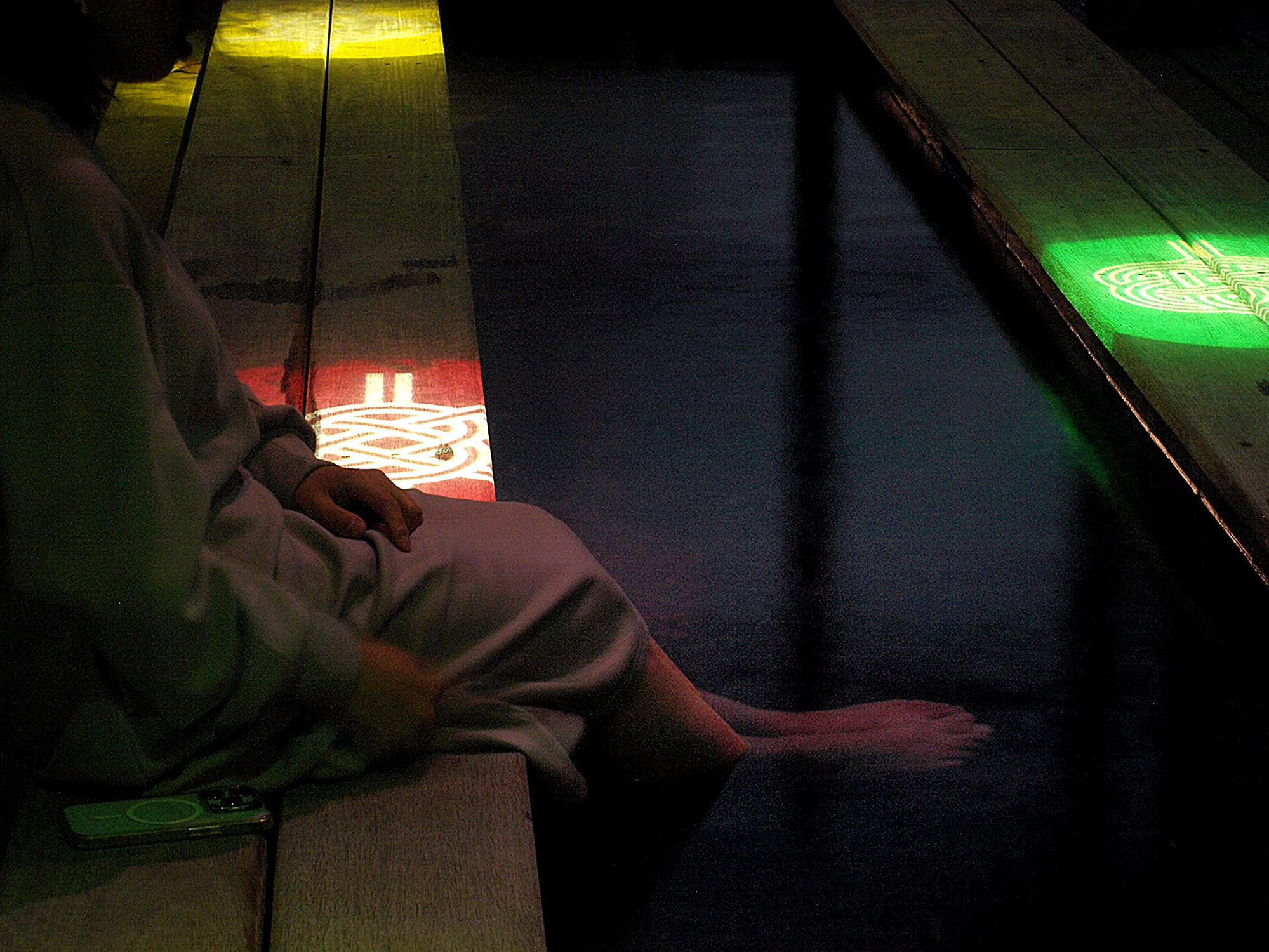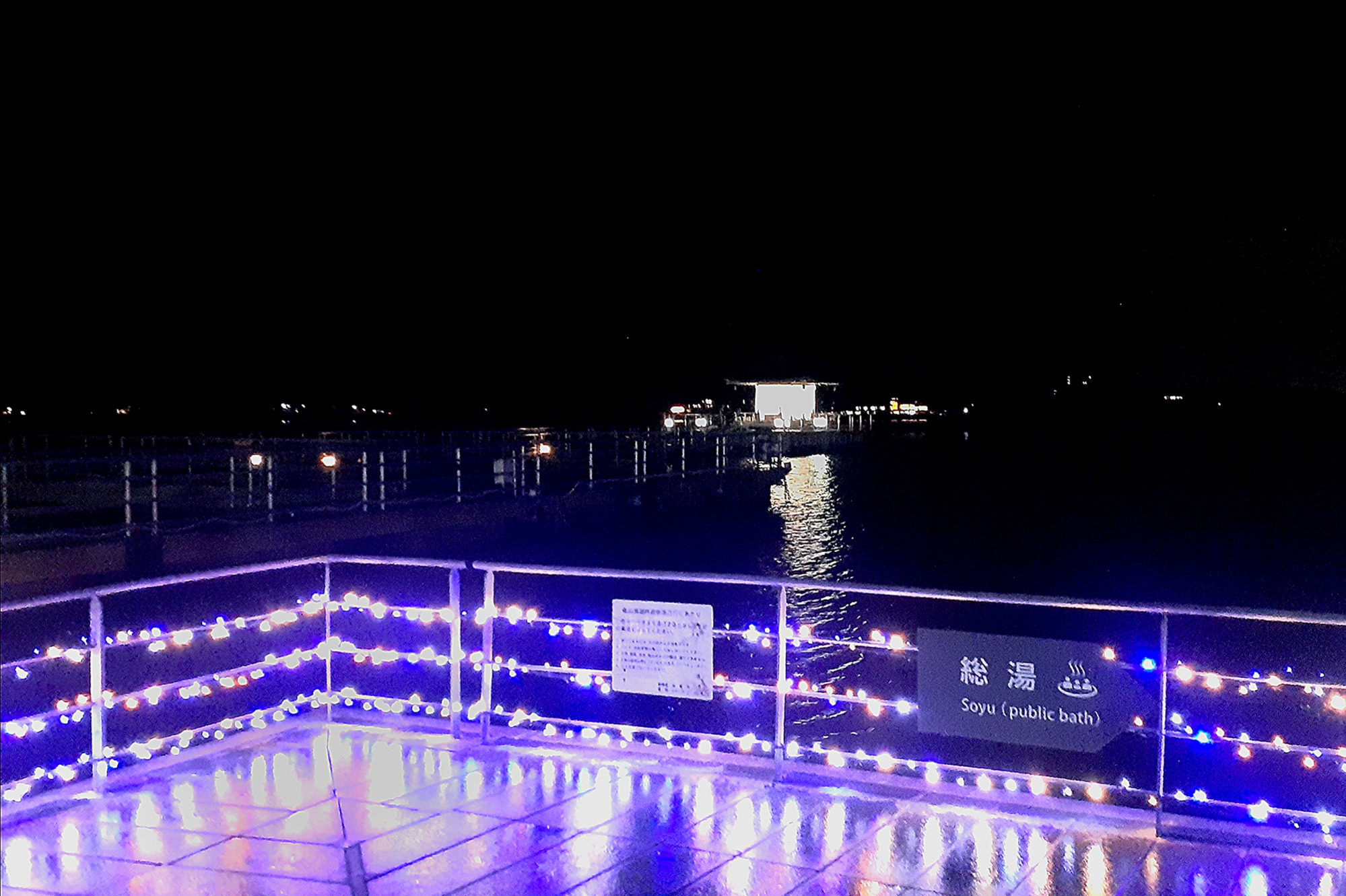 辺りが暗くなると、足の湯えんがわも幻想的なイルミネーションで彩られます。