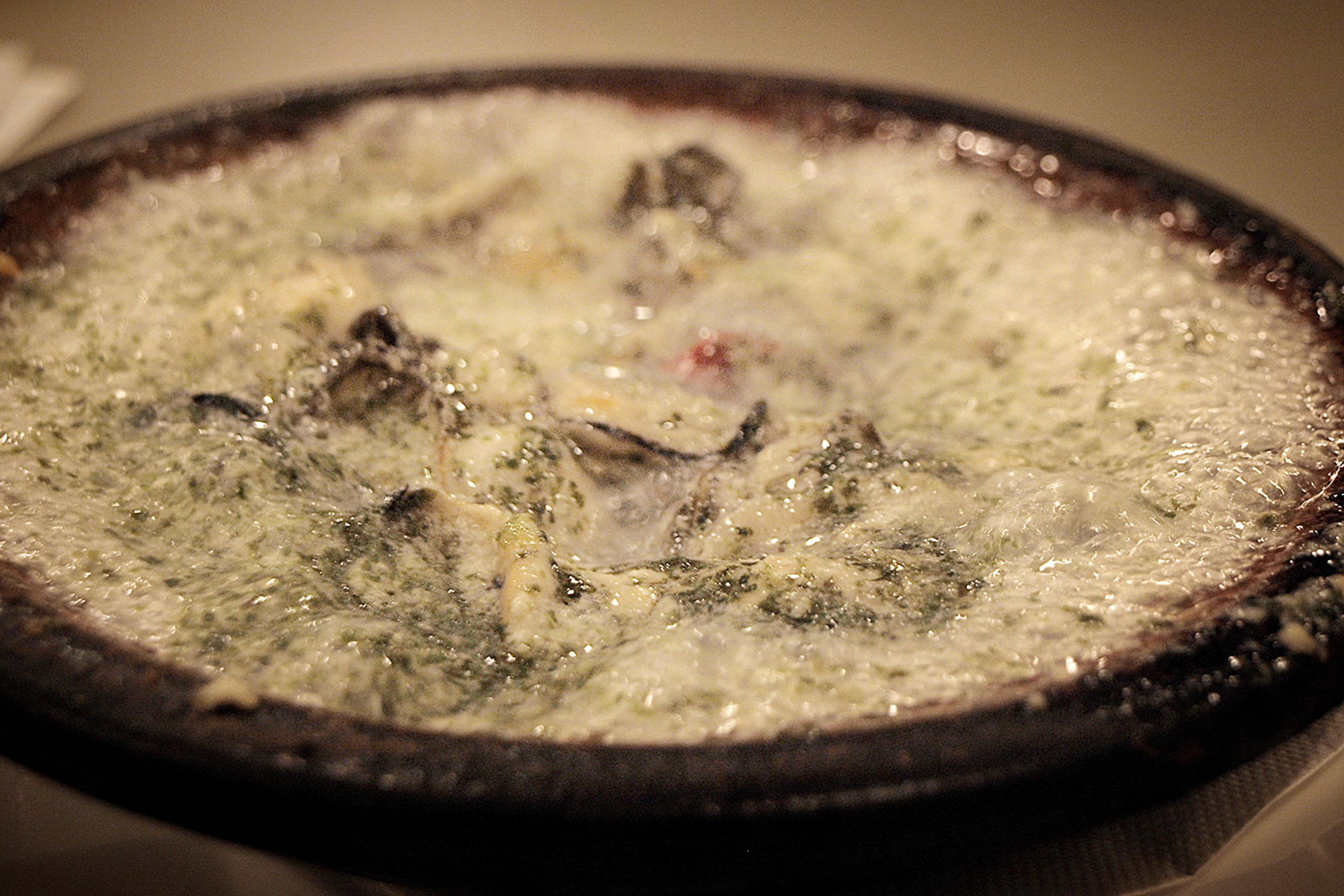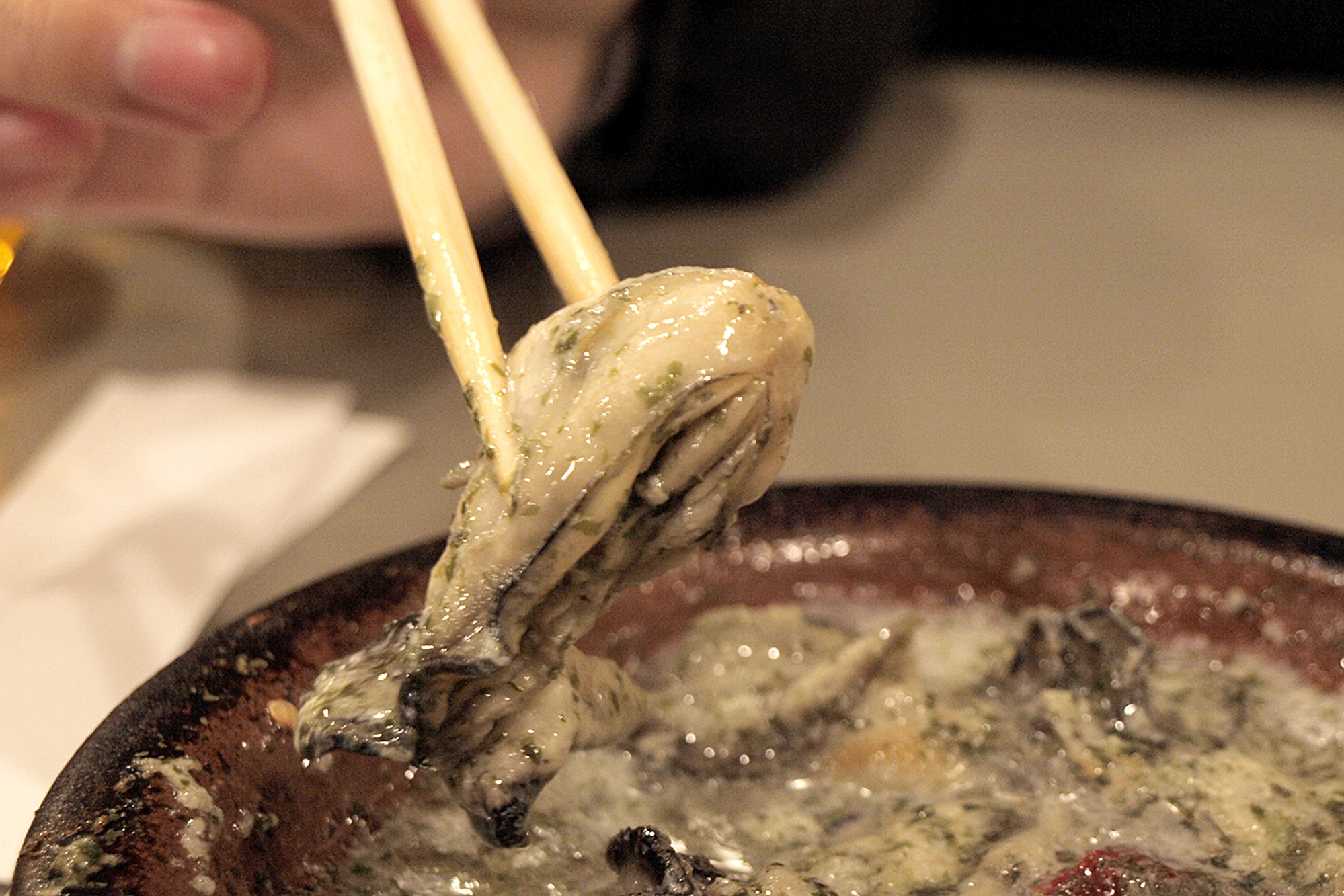 今回いただいたメニューの中で、特に印象深かったのは、牡蠣とあおさ海苔のアヒージョとパスタ。