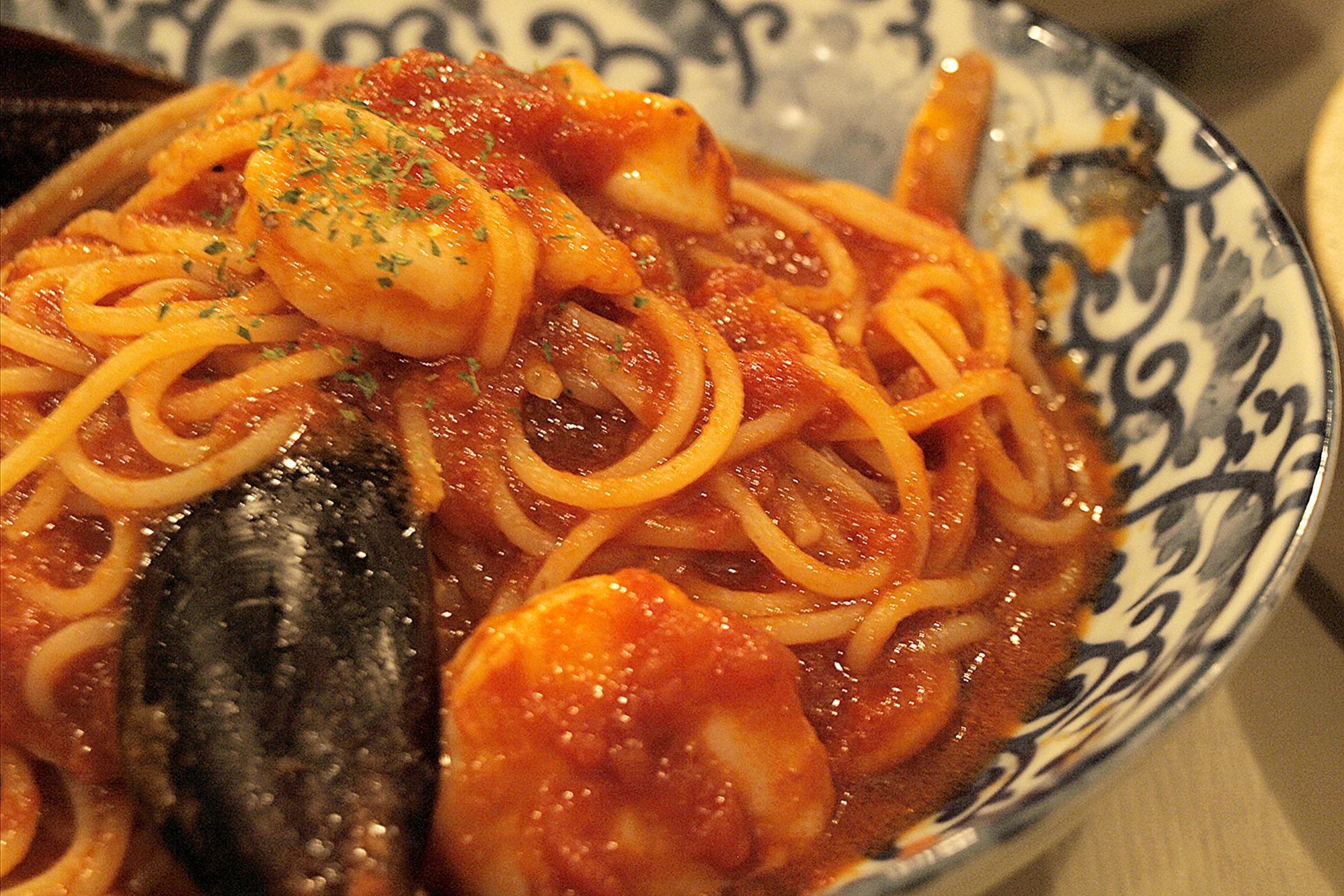 ペスカトーレは、トマトベースのソースにイカやエビなどの魚介類の出汁がしっかりしていて食べ飽きないです。
