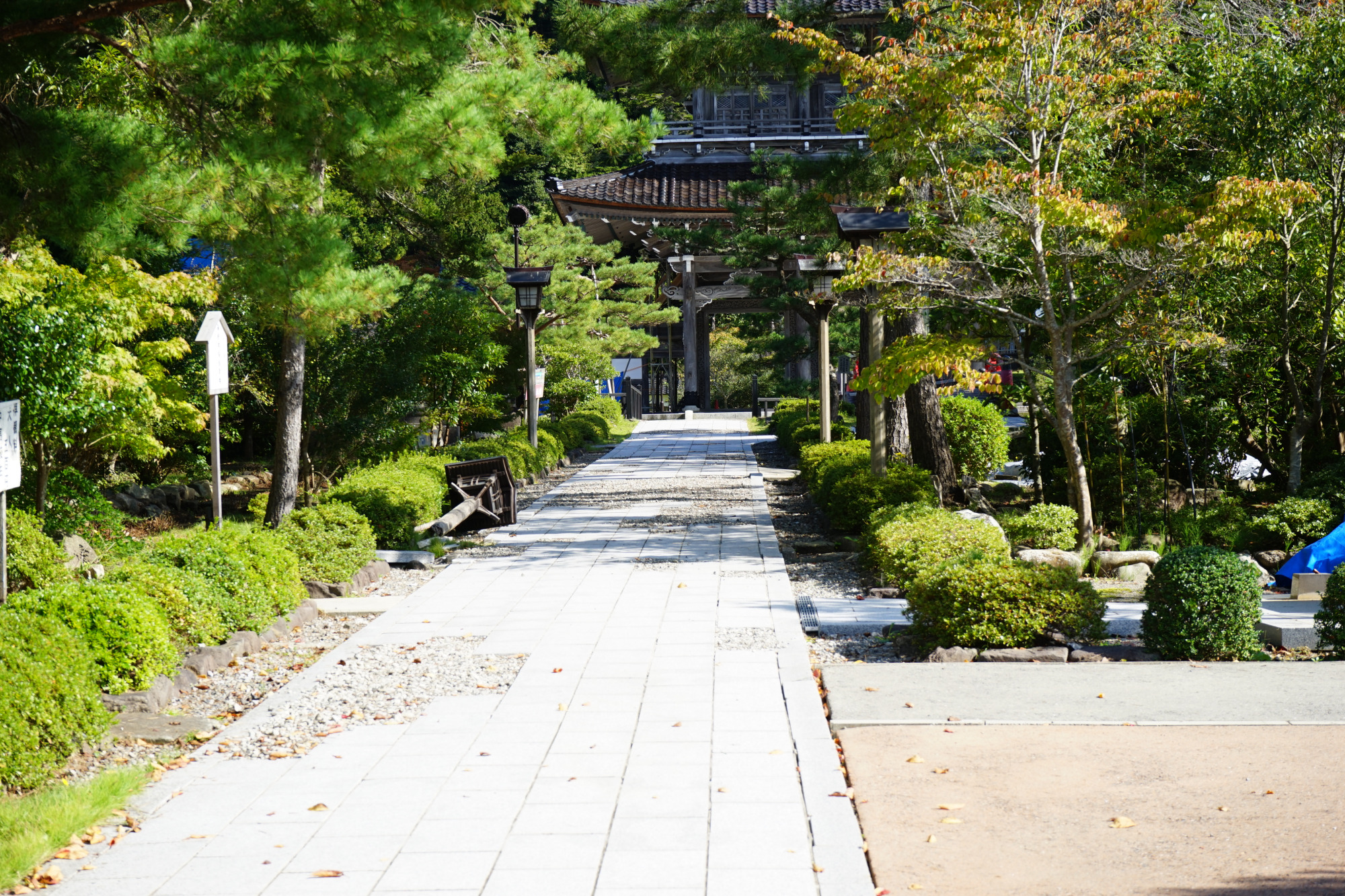 また、ところどころブルーシートで覆われてはいるものも、寺を囲う山々、庭のモミジやイチョウなど自然は変わらず美しく心を癒やしてくれます。