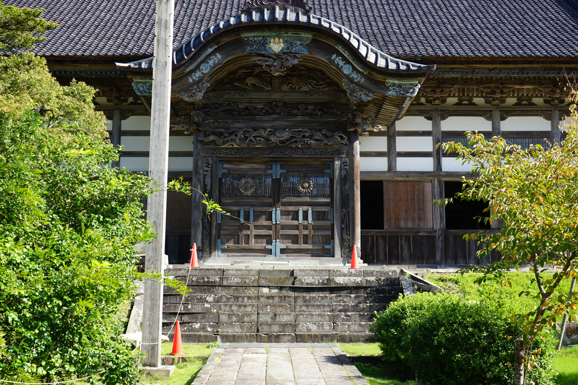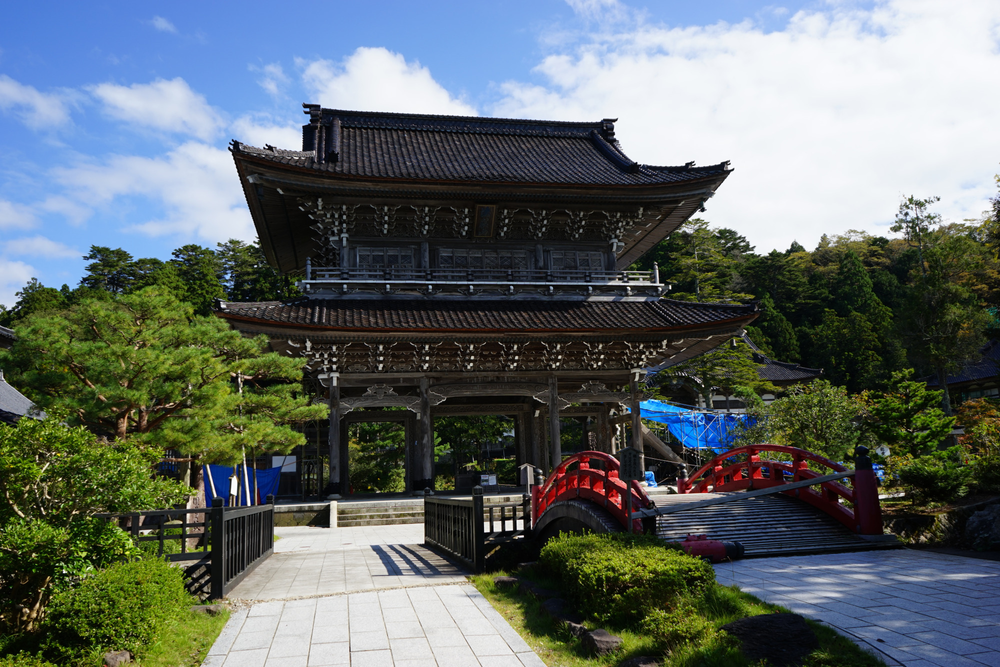 各建造物を順に巡る「回廊」はまだ通れませんが、外からみるだけでも、建造物の重厚さ、設えの繊細さ、庭園の美しさなど十分に感じられます。ただし境内には、まだ赤いコーンやブルーシートがあちこちにあります。その両面あるのが、嘘偽りのない「いまの總持寺祖院」の姿であり、それでも拝観を再開している意義を感じ取りたいと思いました。そんな気持ちも感じ取りながら、ぜひ観光に行ってみてください。