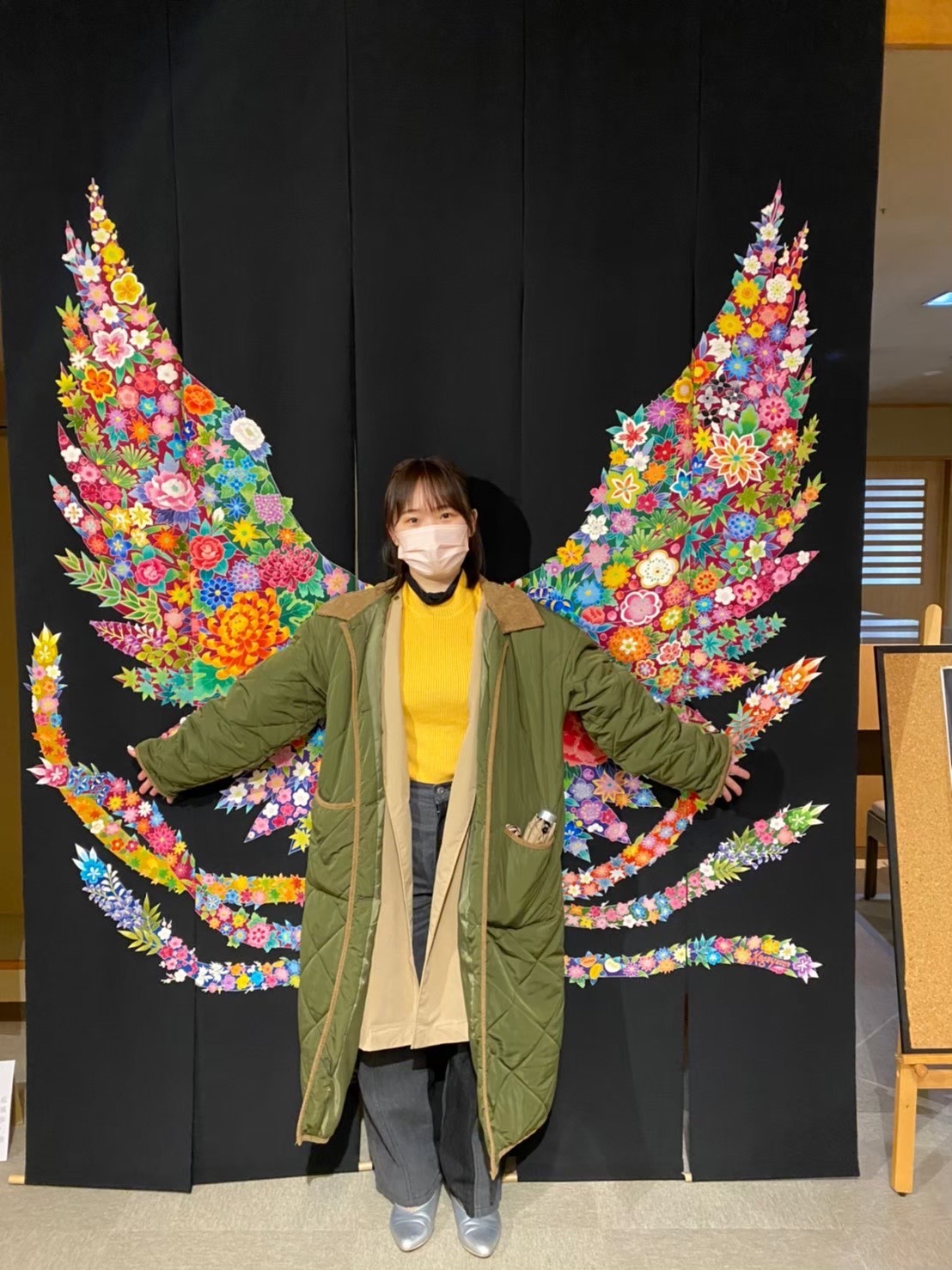 羽根が生えているように見える「花嫁のれん」の前でパシャリ!