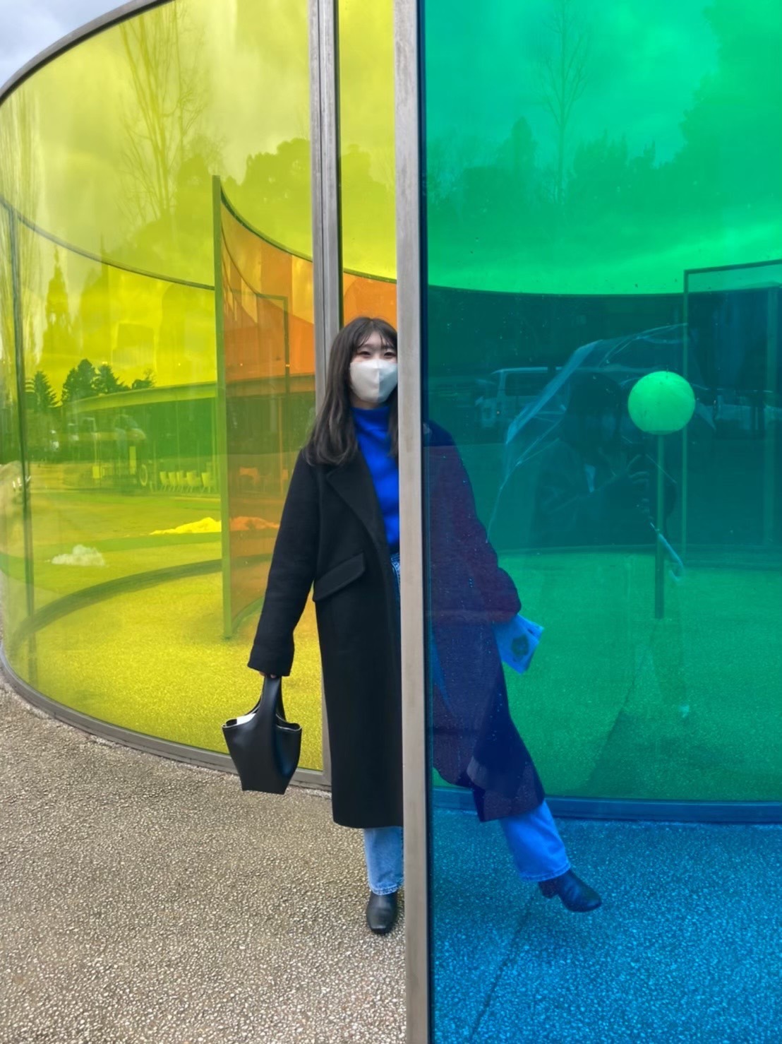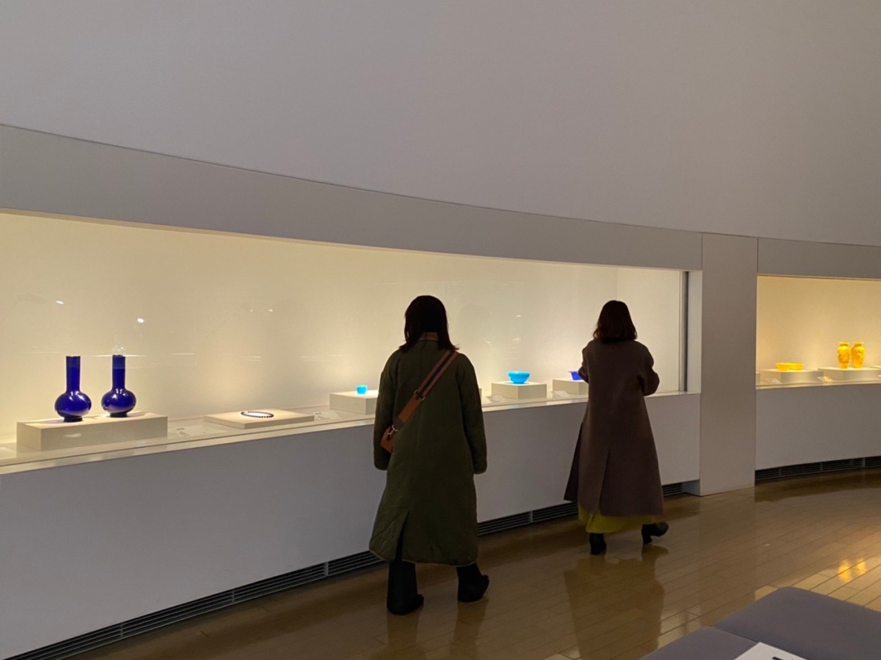 私たちは、色の三原色である、シアン(青)・マゼンタ(赤)・イエロー(黄)の丸みを帯びたガラスが渦巻き状になった作品に惹かれました!赤と青を合わせると紫に、青と黄なら緑に、黄と赤でオレンジになる色の掛け合わせを実体験できます♪