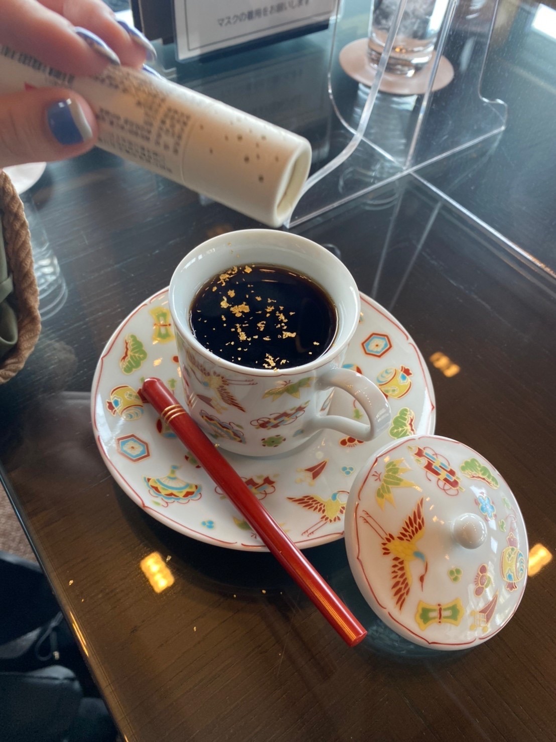 なんと、金箔をふりかけて頂くという贅沢っぷり。普段飲んでいるコーヒーより、何倍も美味しく感じます。外を眺めながらゆったりと味わいました。時間を忘れてしまいそう~。
