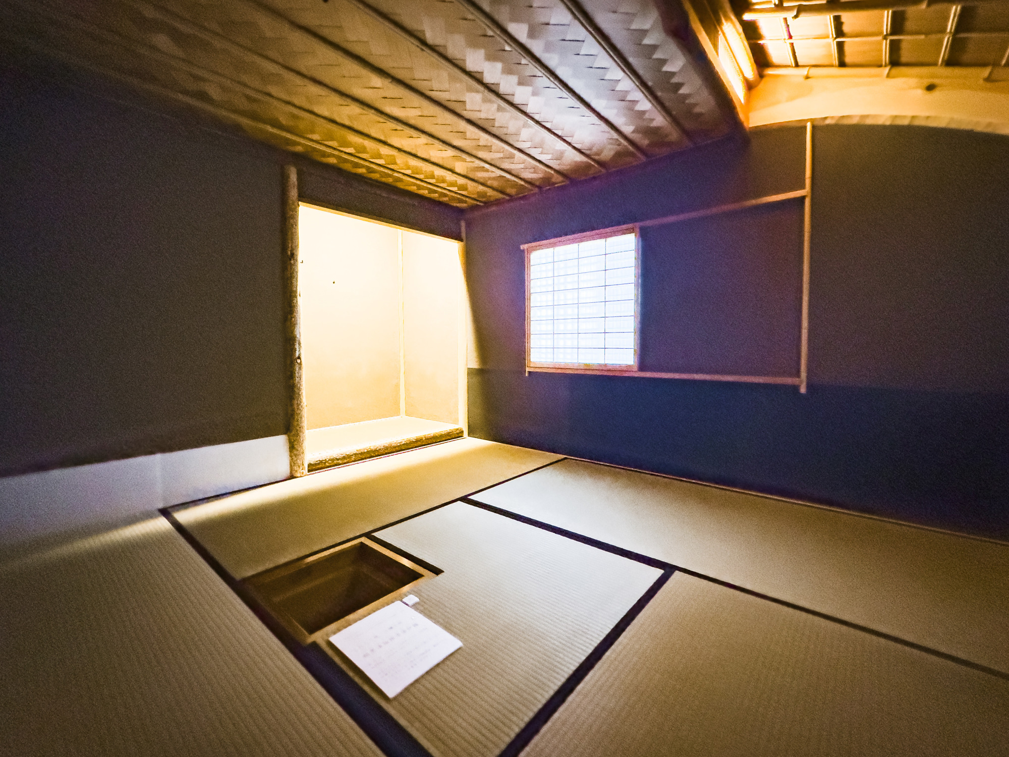 また、かつて浴室だった場所を改修した「茶室」も魅力的です。京都市の裏千家家元邸内にある「又隠」を参照したデザインで、屋根の一部にはこけら葺きが用いられ、細部にまでこだわりが感じられる空間となっています。