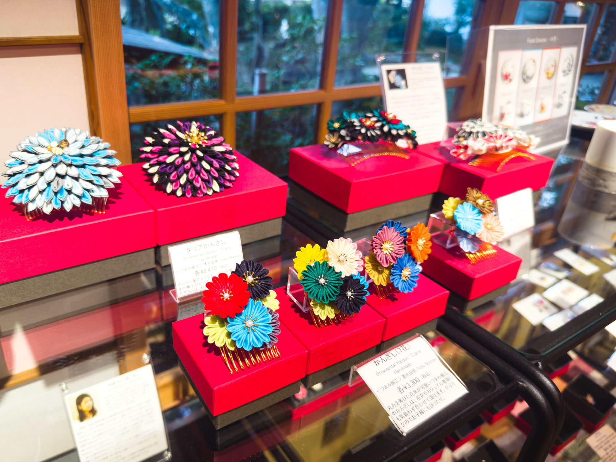 九谷焼やつまみ細工、金工、漆芸、金蒔絵アクセサリー、水引など、独自の個性が光る作品がずらりと並びます。