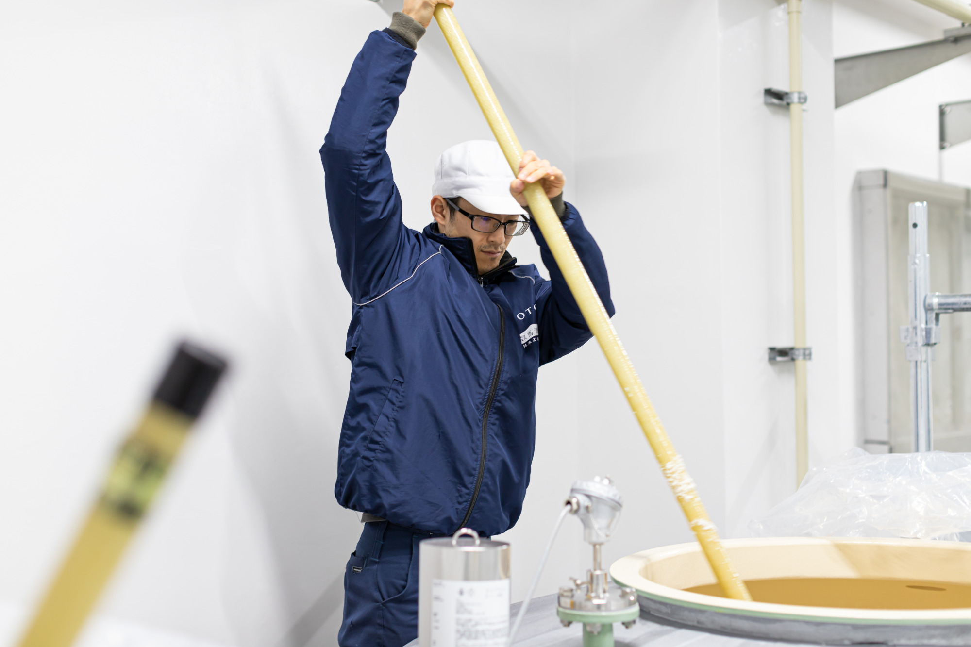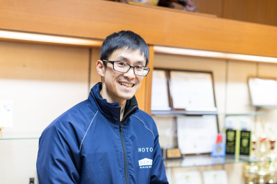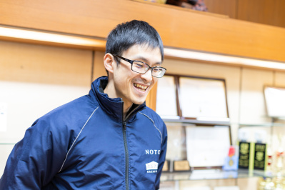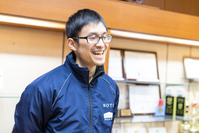 東京都から新卒で数馬酒造に就職された栗間さん。前任杜氏から教わった経験と自身の感覚で、数馬の酒造りを担う若き長として活躍されています。