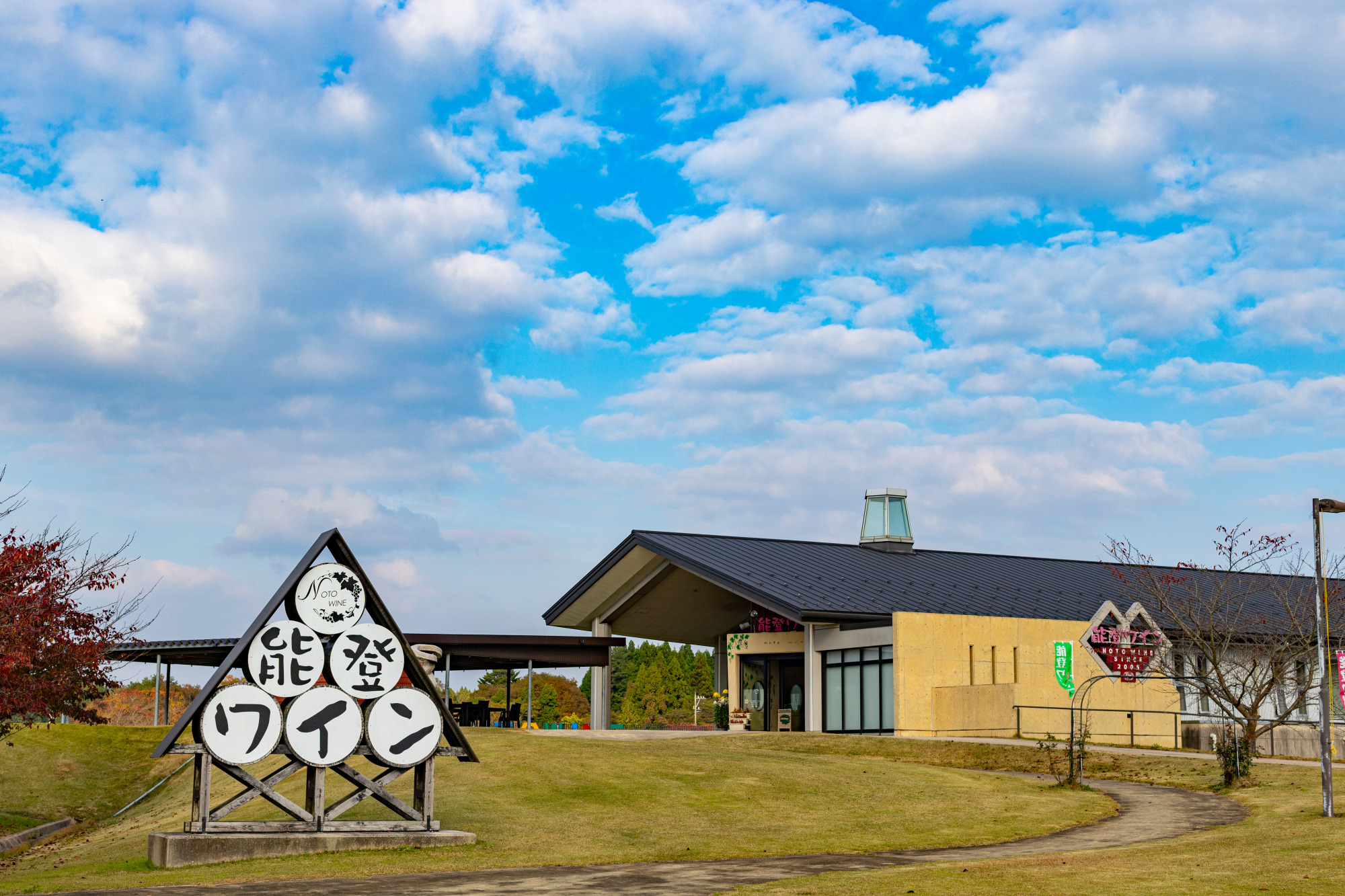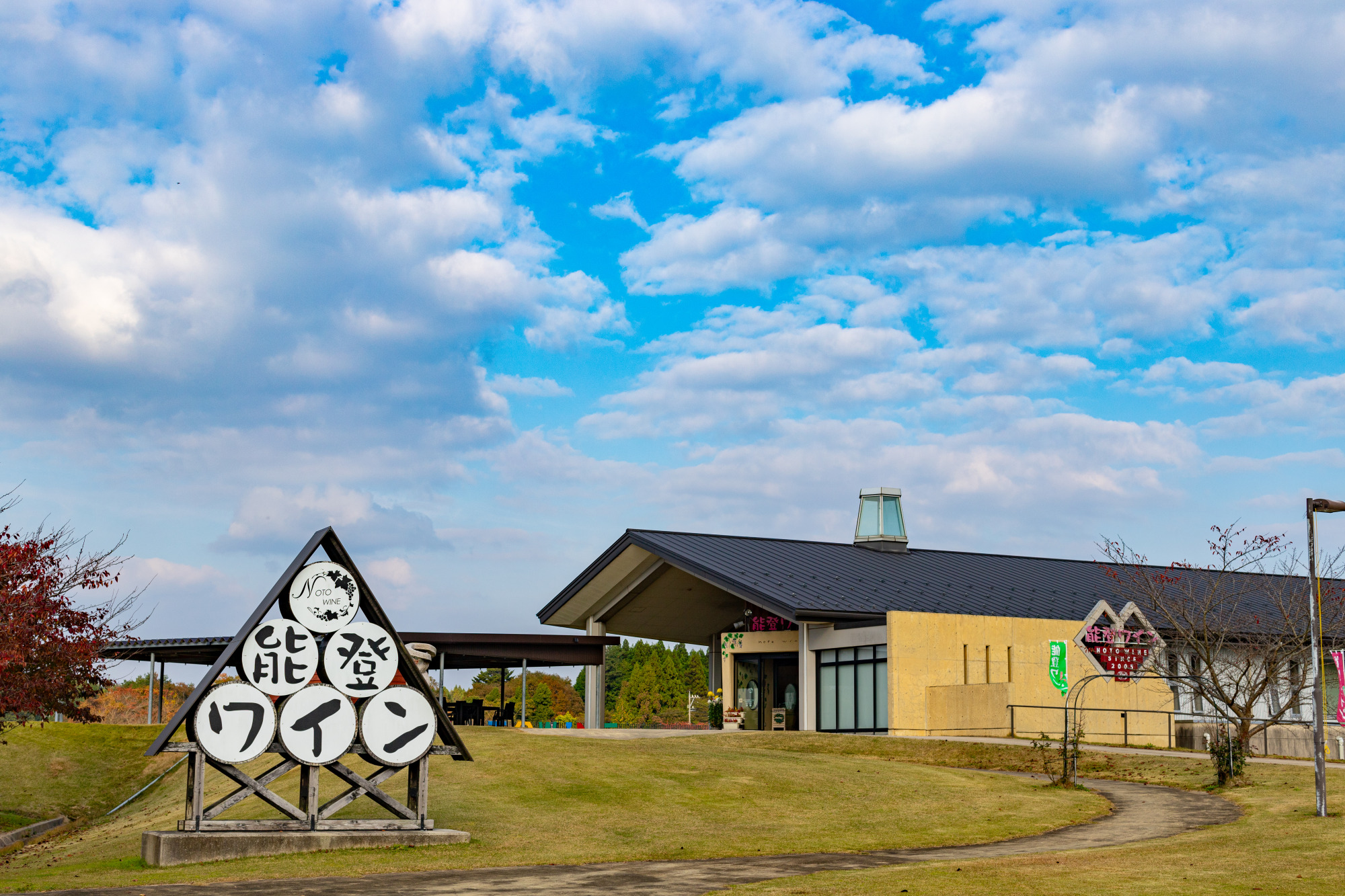 里山の風景を存分に感じながらワインを試飲することも可能、勿論ワインを購入して買えることも可能!これはドライブにぴったりの施設でしょう。でも運転手はお酒は控えてくださいね…!