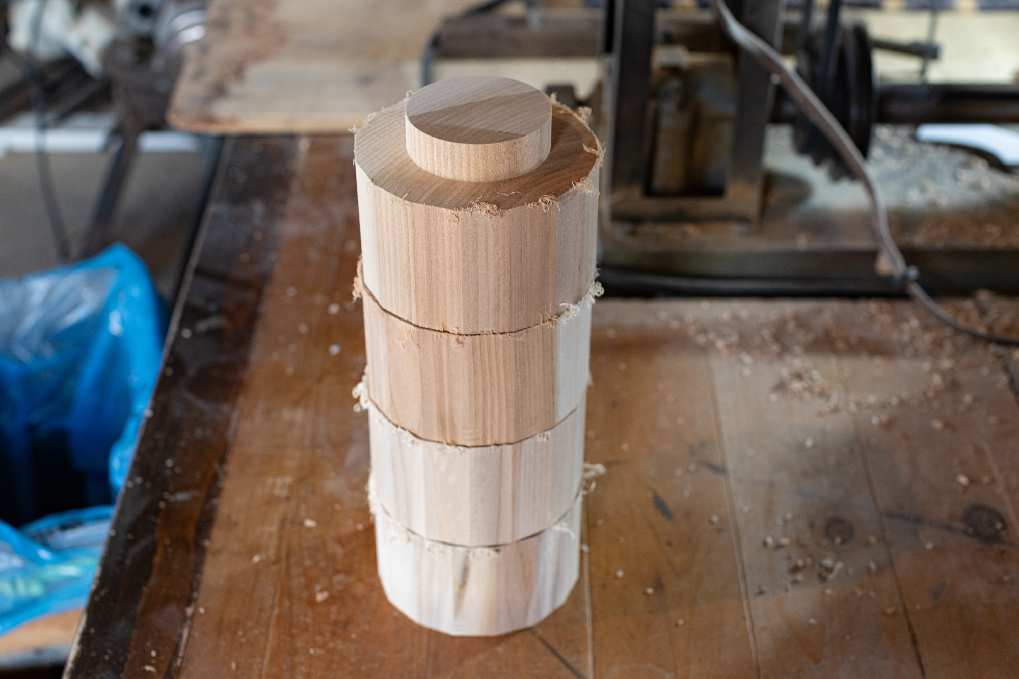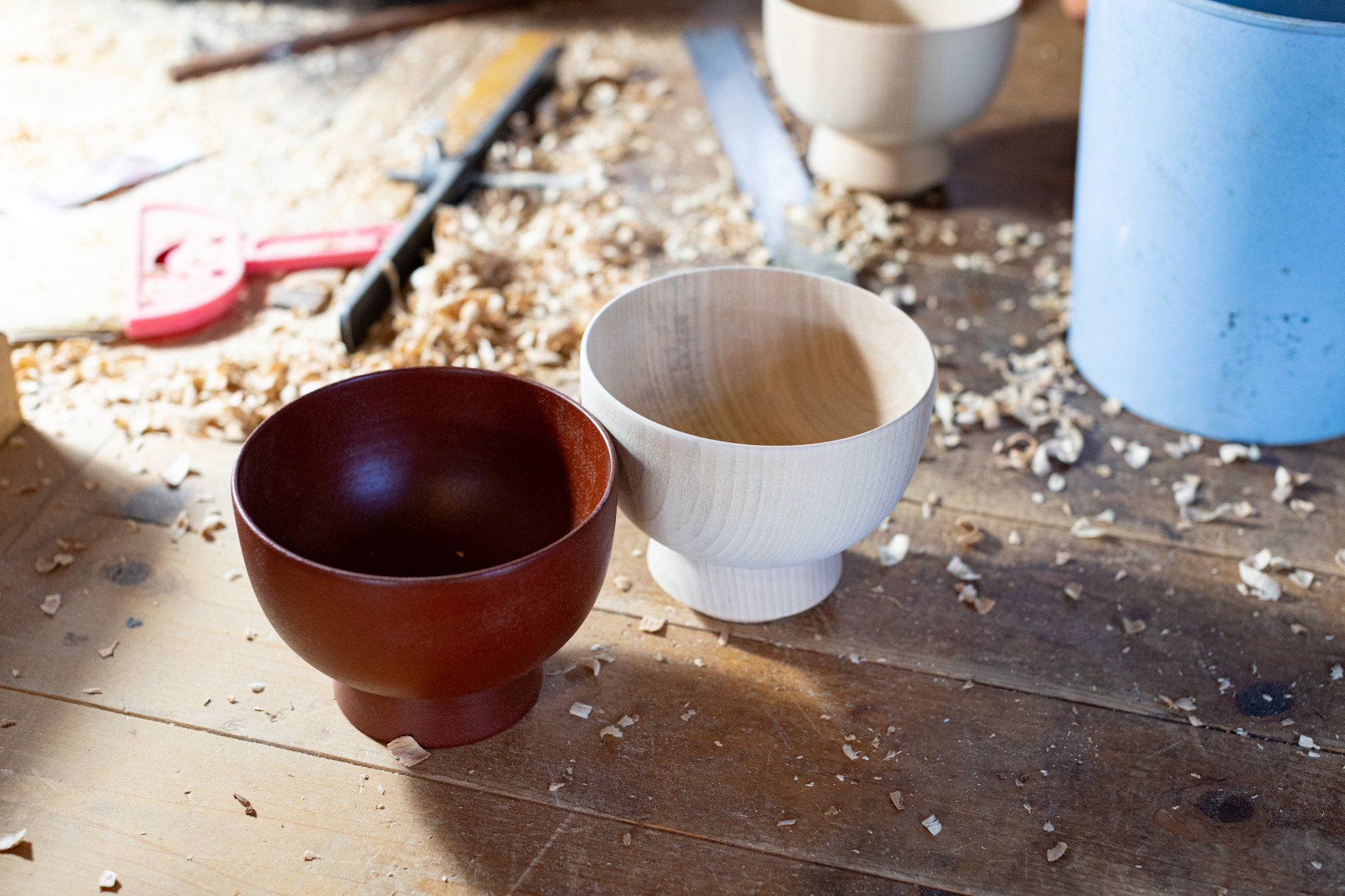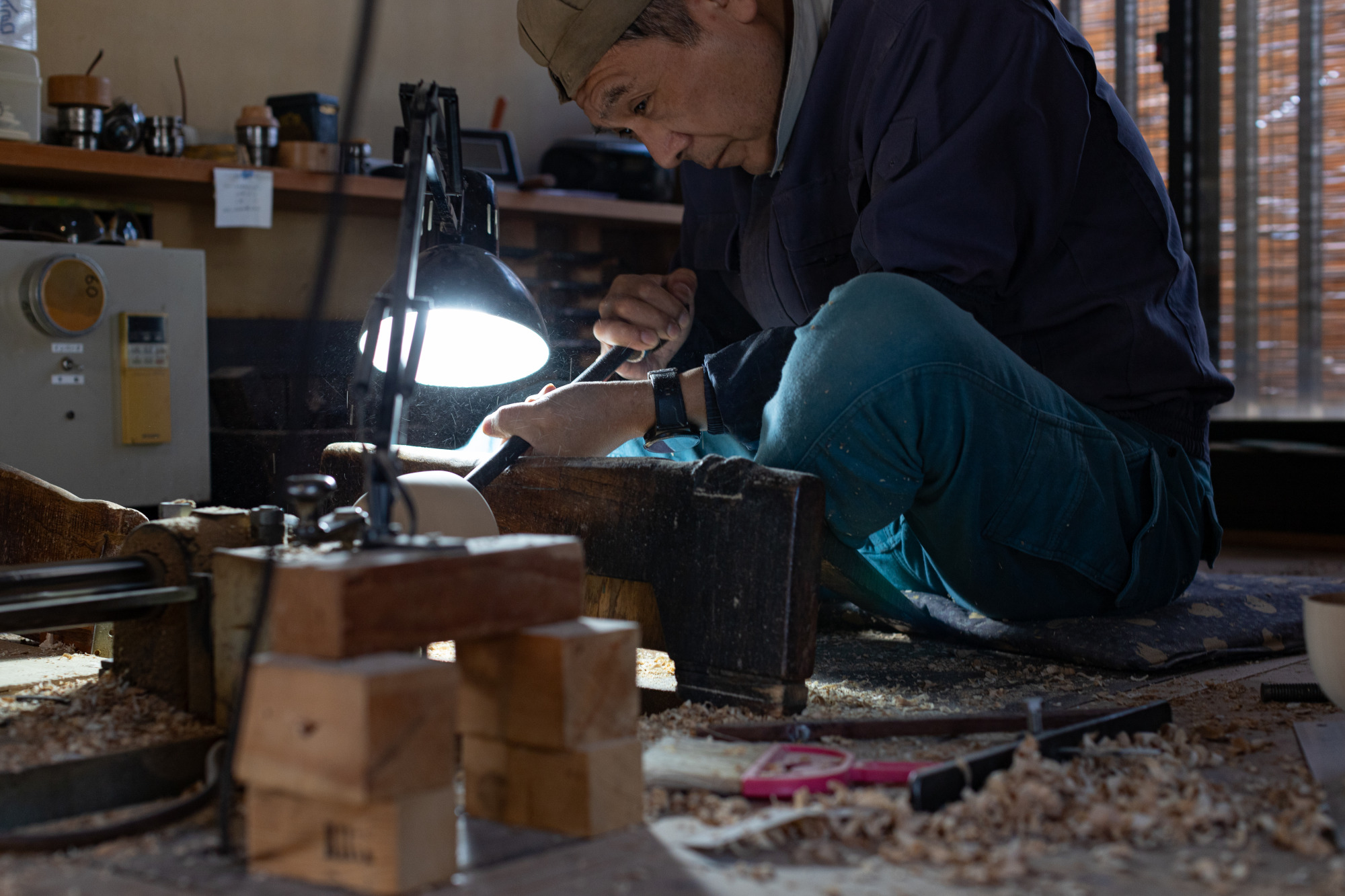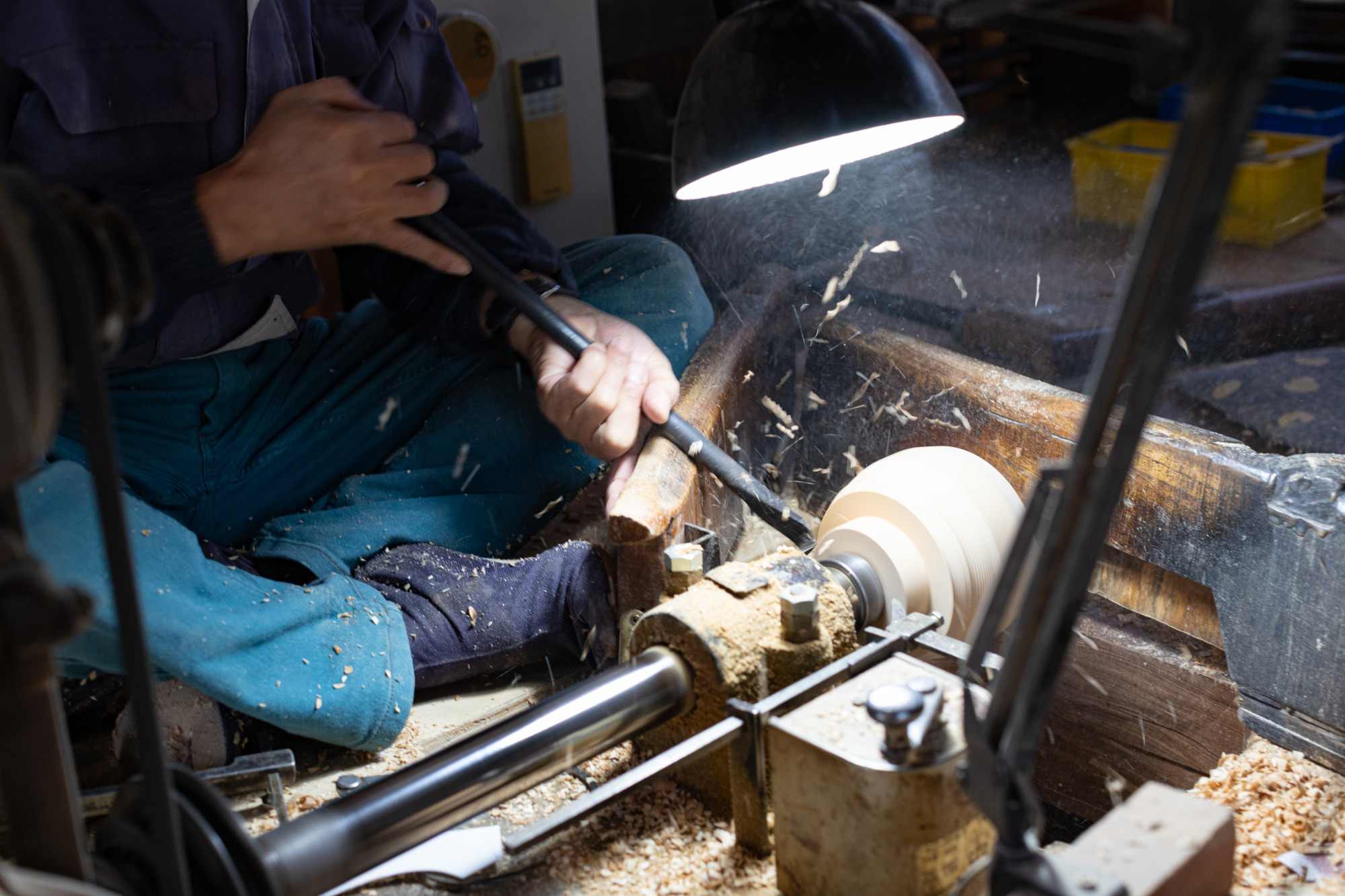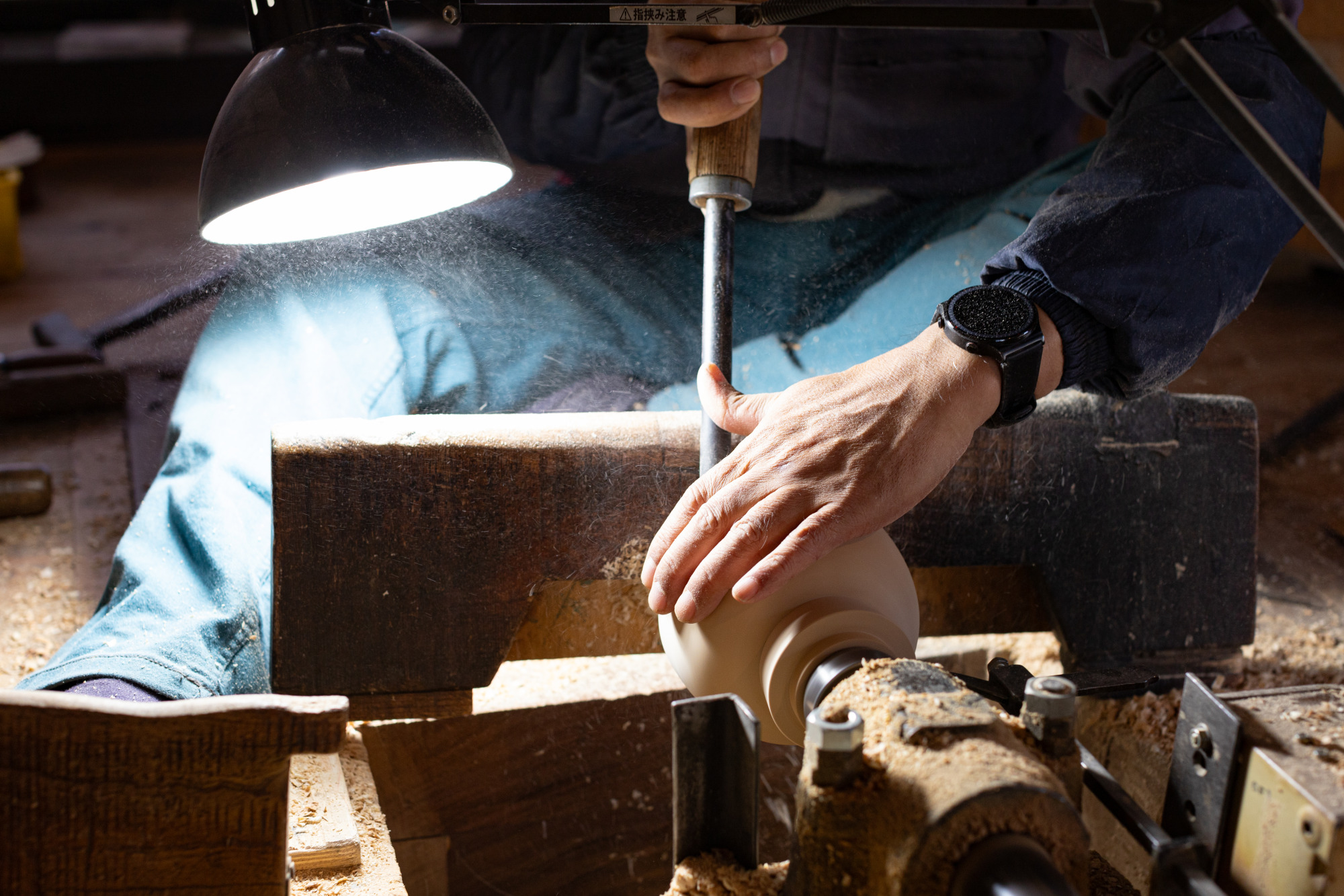 続いて見学させて頂いたのは「生地」作りの工程です。ただの木から器の形を切り出す、まさに職人技を肌で感じます。
