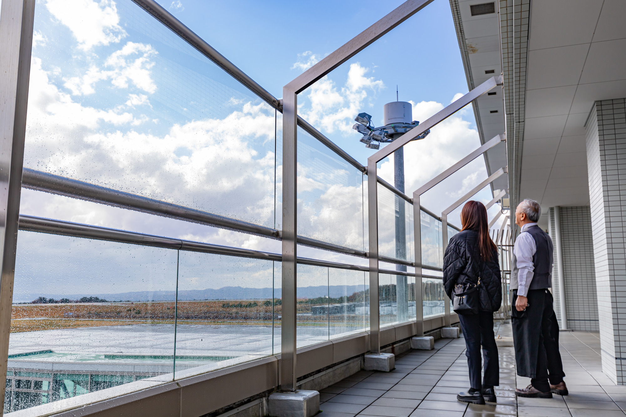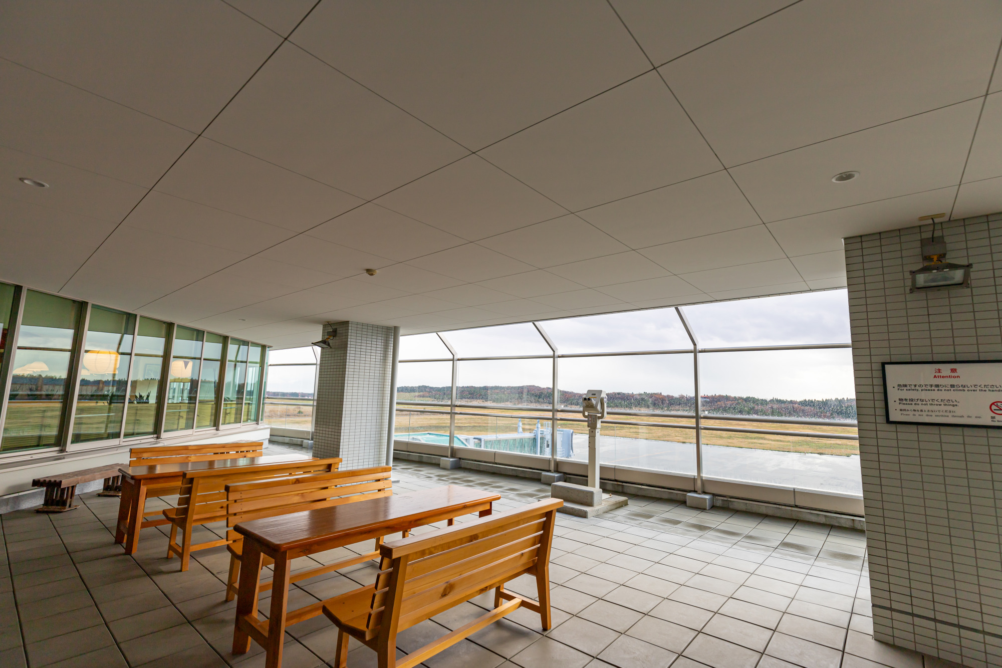 飛行機を見渡せるデッキもあり、こちらは半分野外になっています。飛行機との距離感が近く、後ろの風景も綺麗で、フォトスポットにおすすめです!