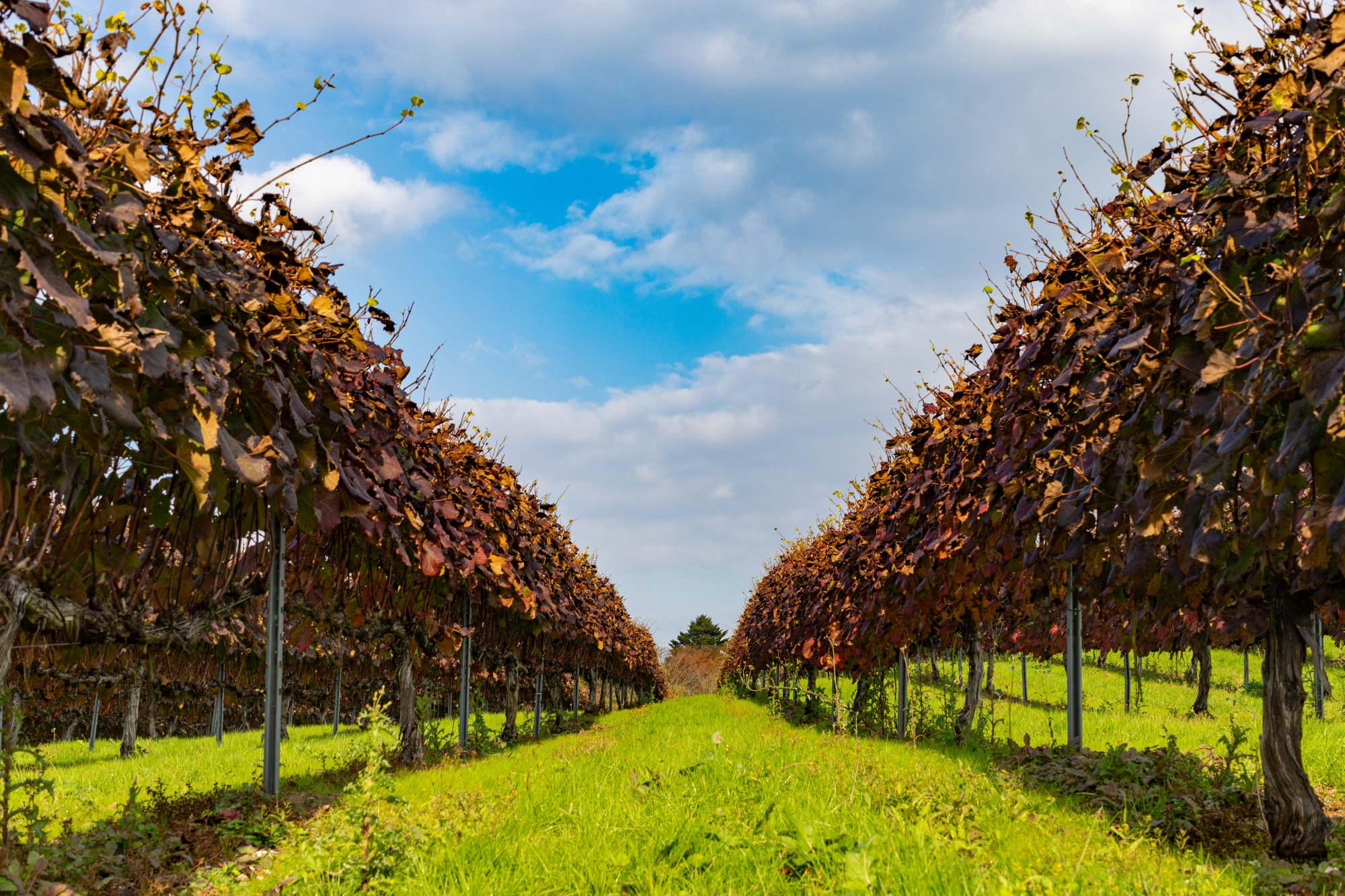 ぶどうの収穫は終わっていましたが、ぶどうの葉っぱが紅葉してなんともいい景色に!