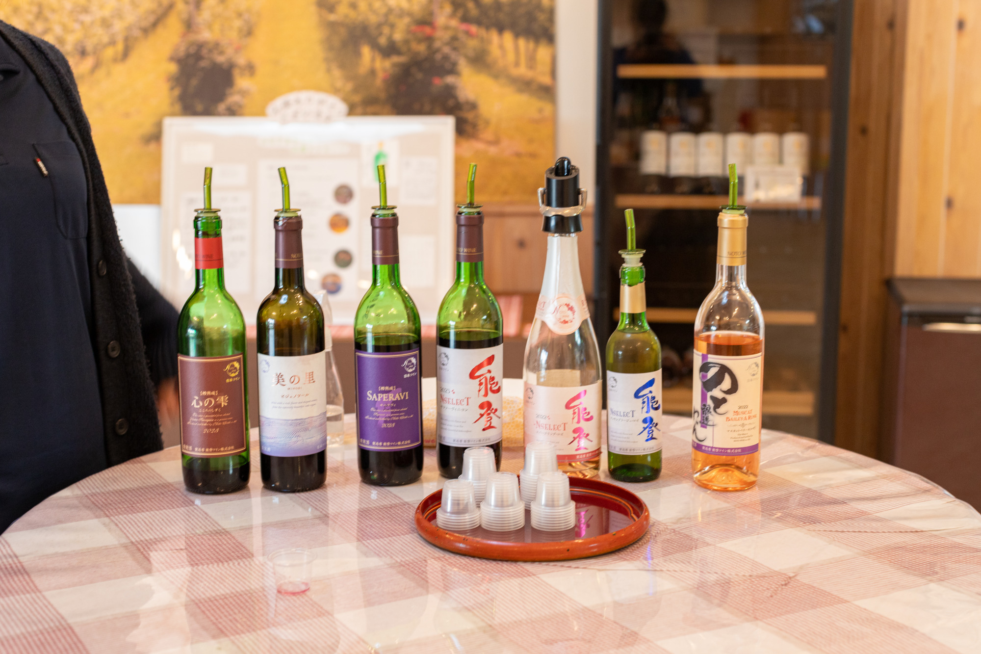 こちらでは数種類のワインが試飲できるコーナーがあります。能登ワインのラインナップを実際に飲んで選べるなんて贅沢なんでしょう、しかも無料です!