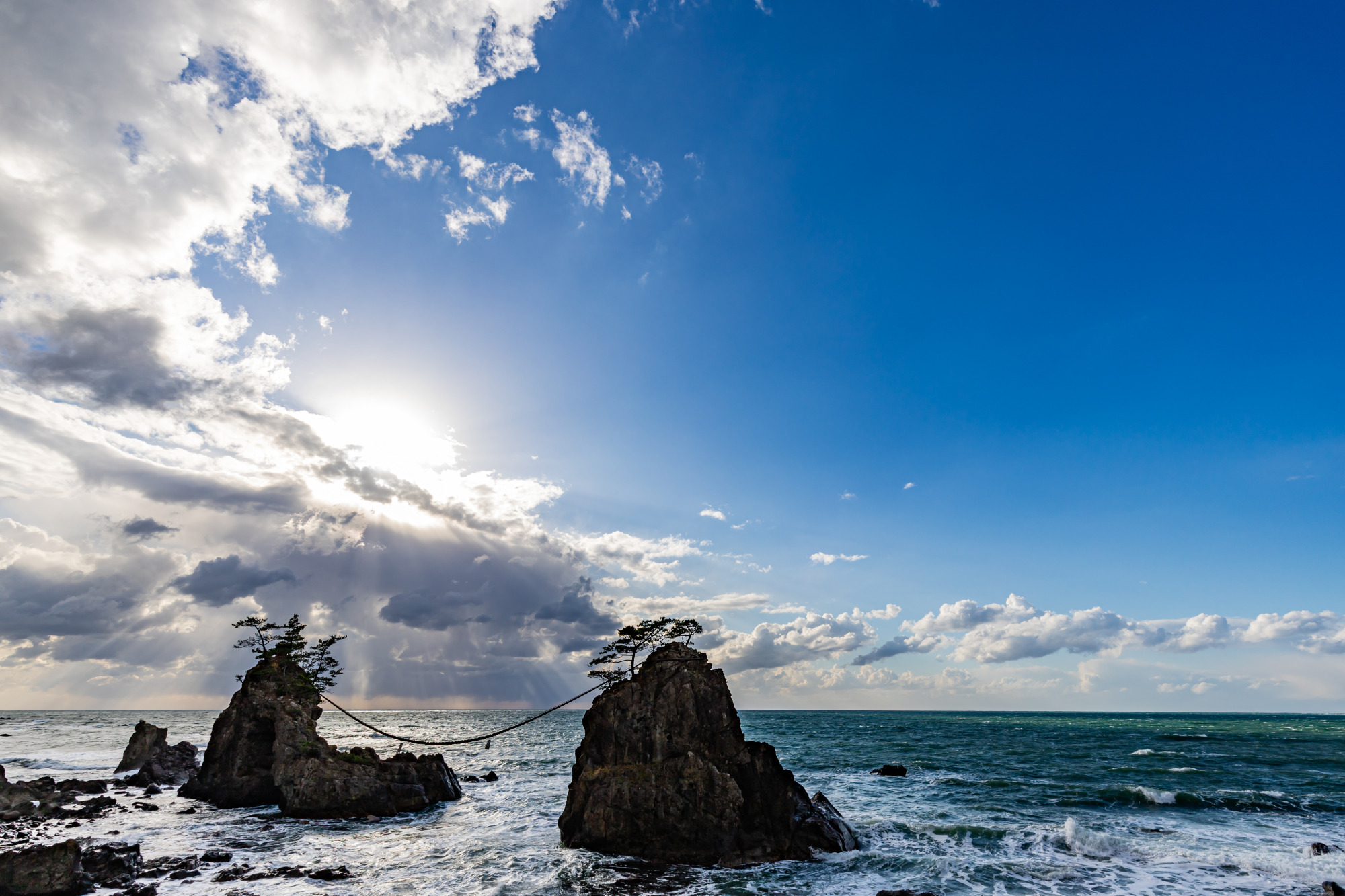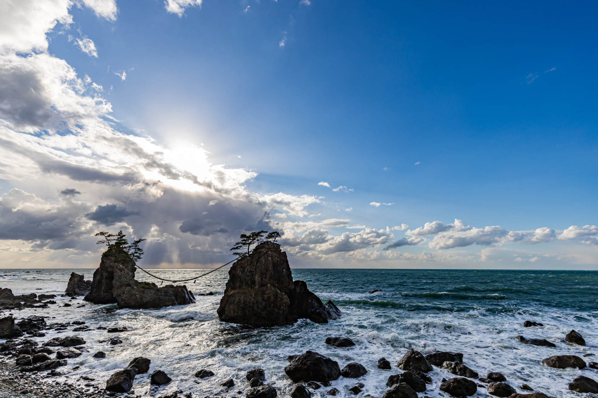 能登金剛の代表的な奇岩で、機織りの神様の伝説を生んだ夫婦岩です!