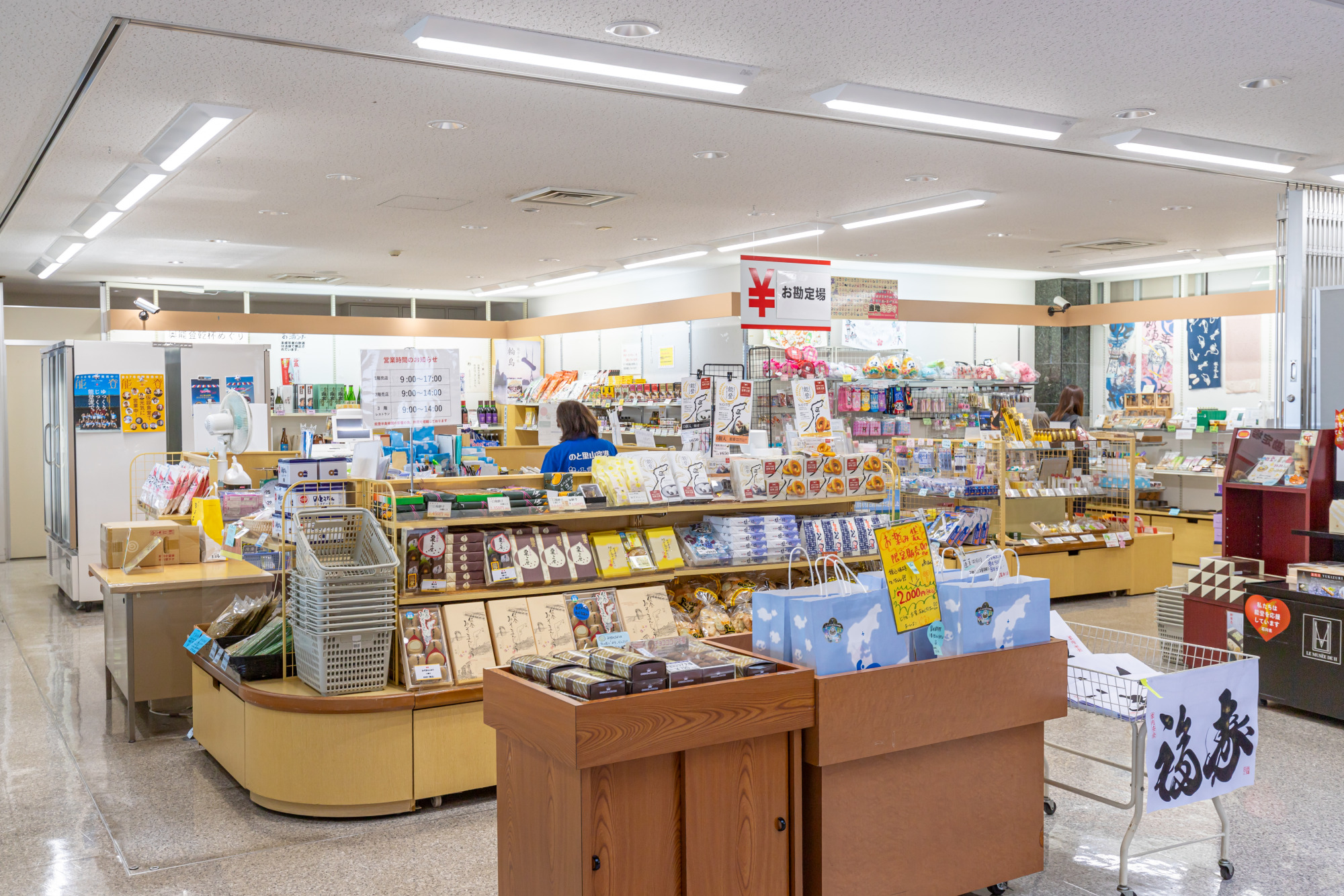 2F 売店/セレンディピティ:能登特産のお菓子、地酒、干物等の販売をしています。