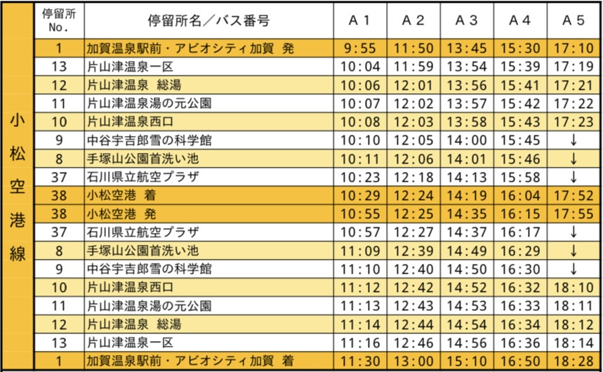 ・小松空港線:加賀温泉駅から片山津温泉を経由し、小松空港へ向かうルート