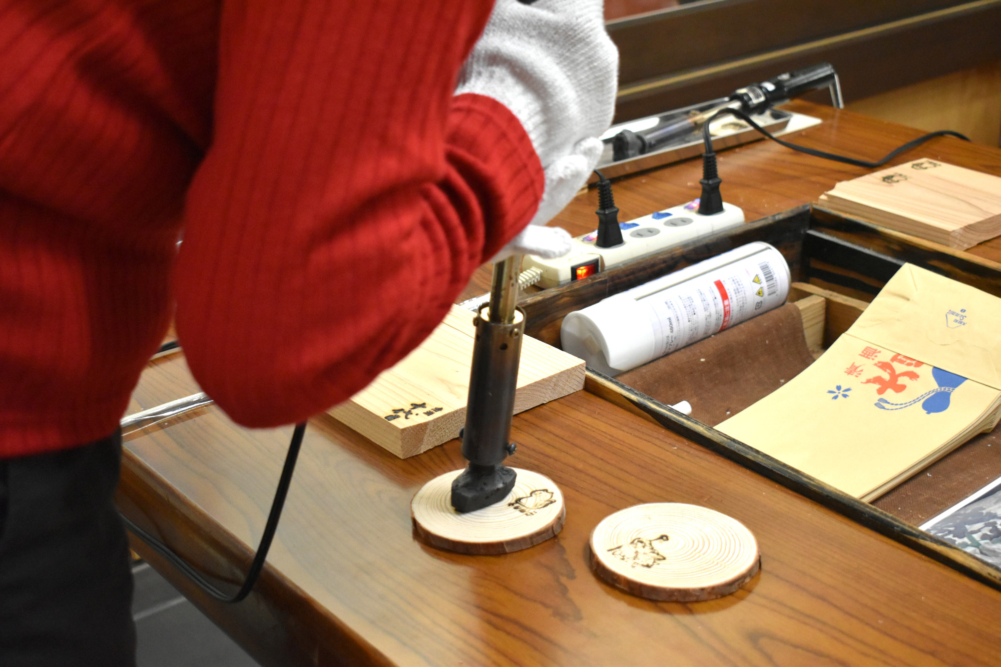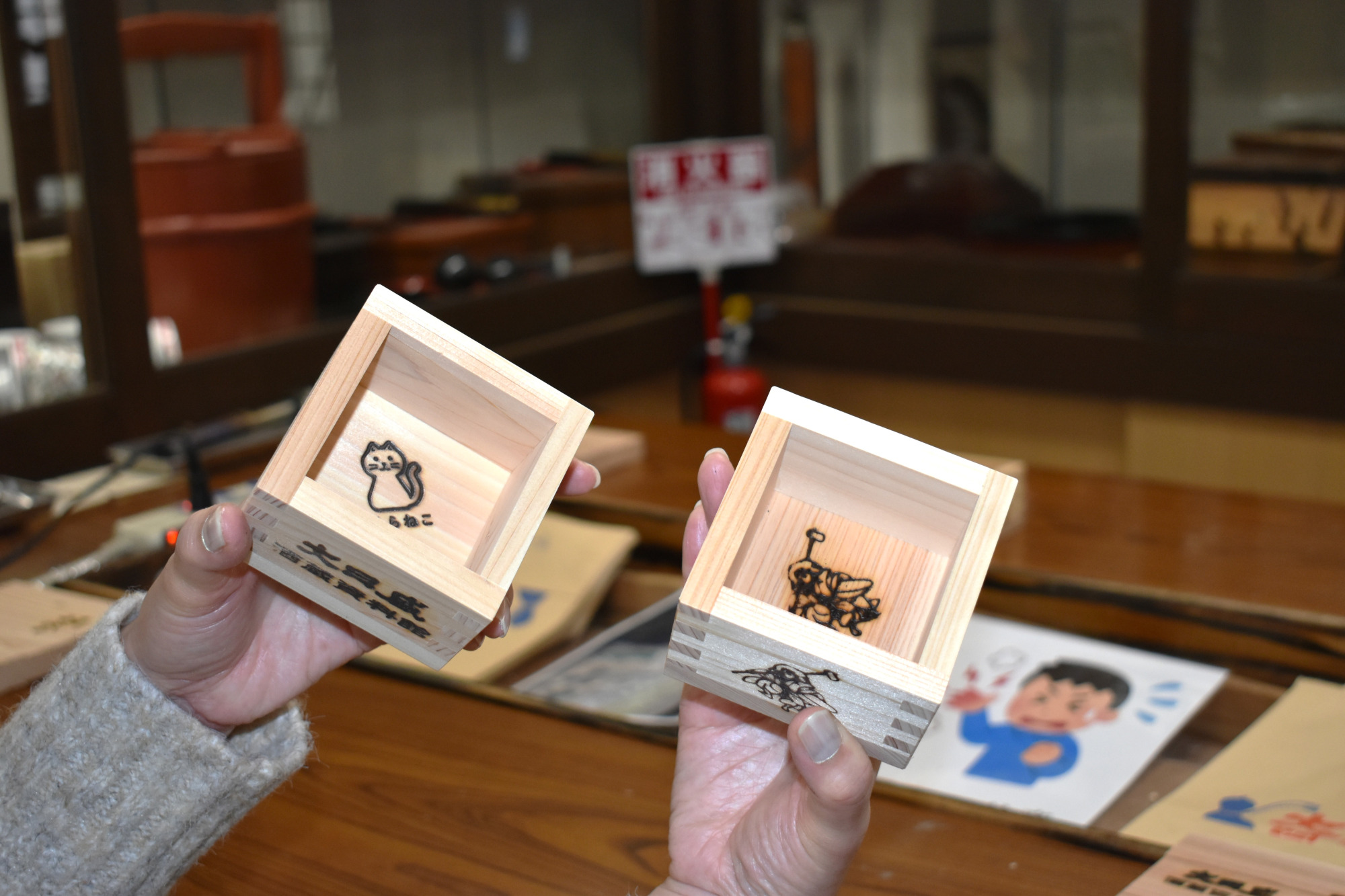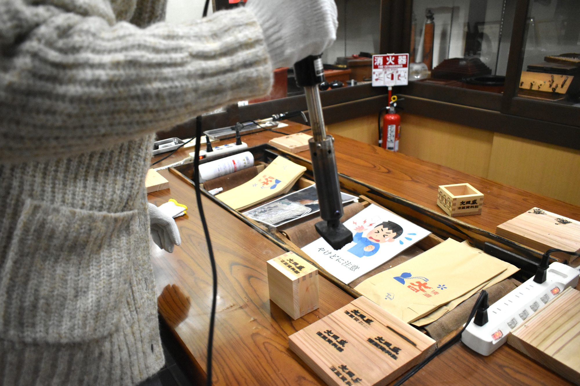 コースターや切株、酒枡での焼印体験も良い思い出となりました。また、試飲コーナーでは常時5~6種類の日本酒を無料で楽しむことができ、味わいと共にその背景を知ることができました。