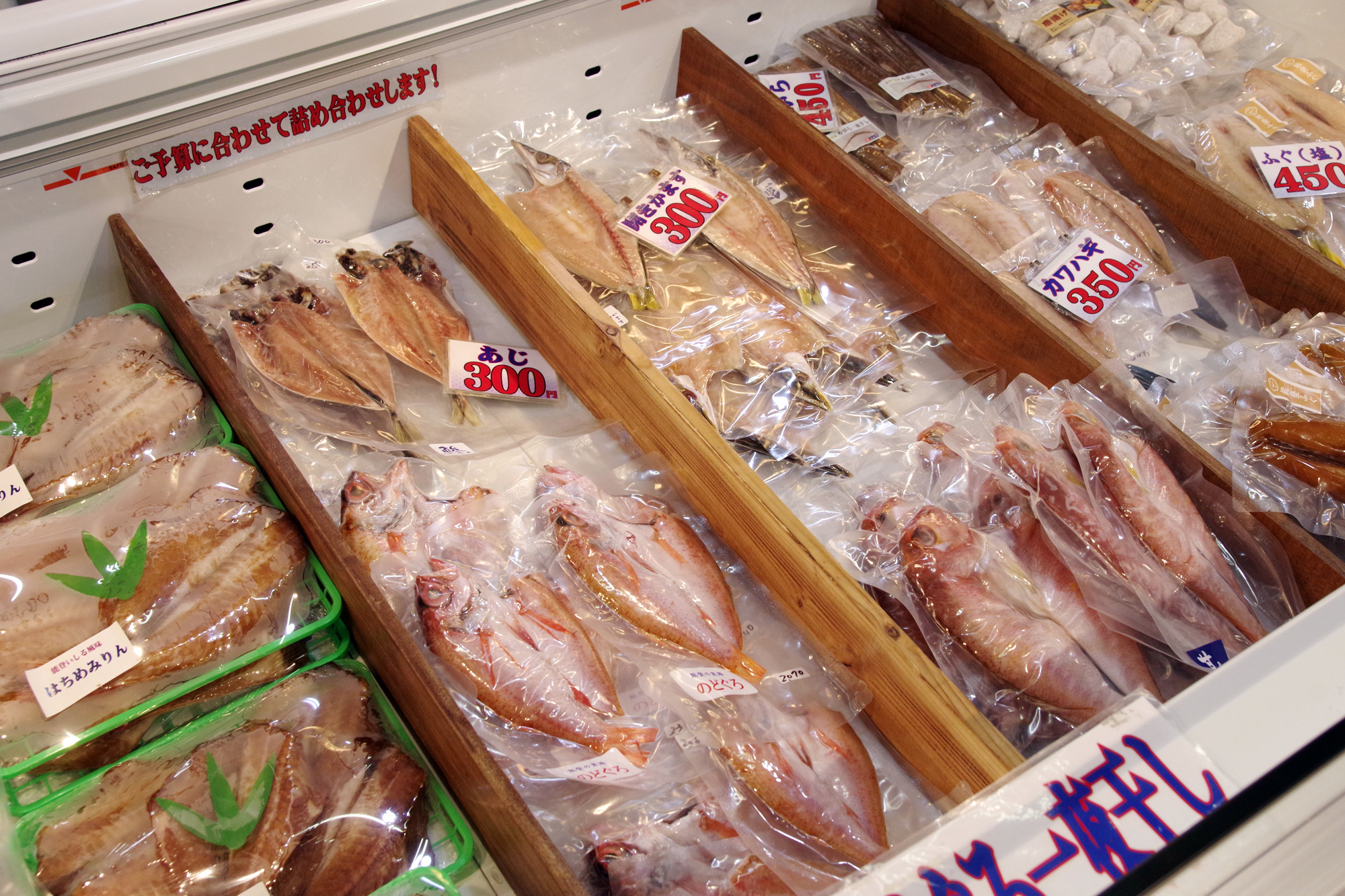 海鮮のほかにも、地元ならではのご当地食品や工芸品、銘菓が並びます。