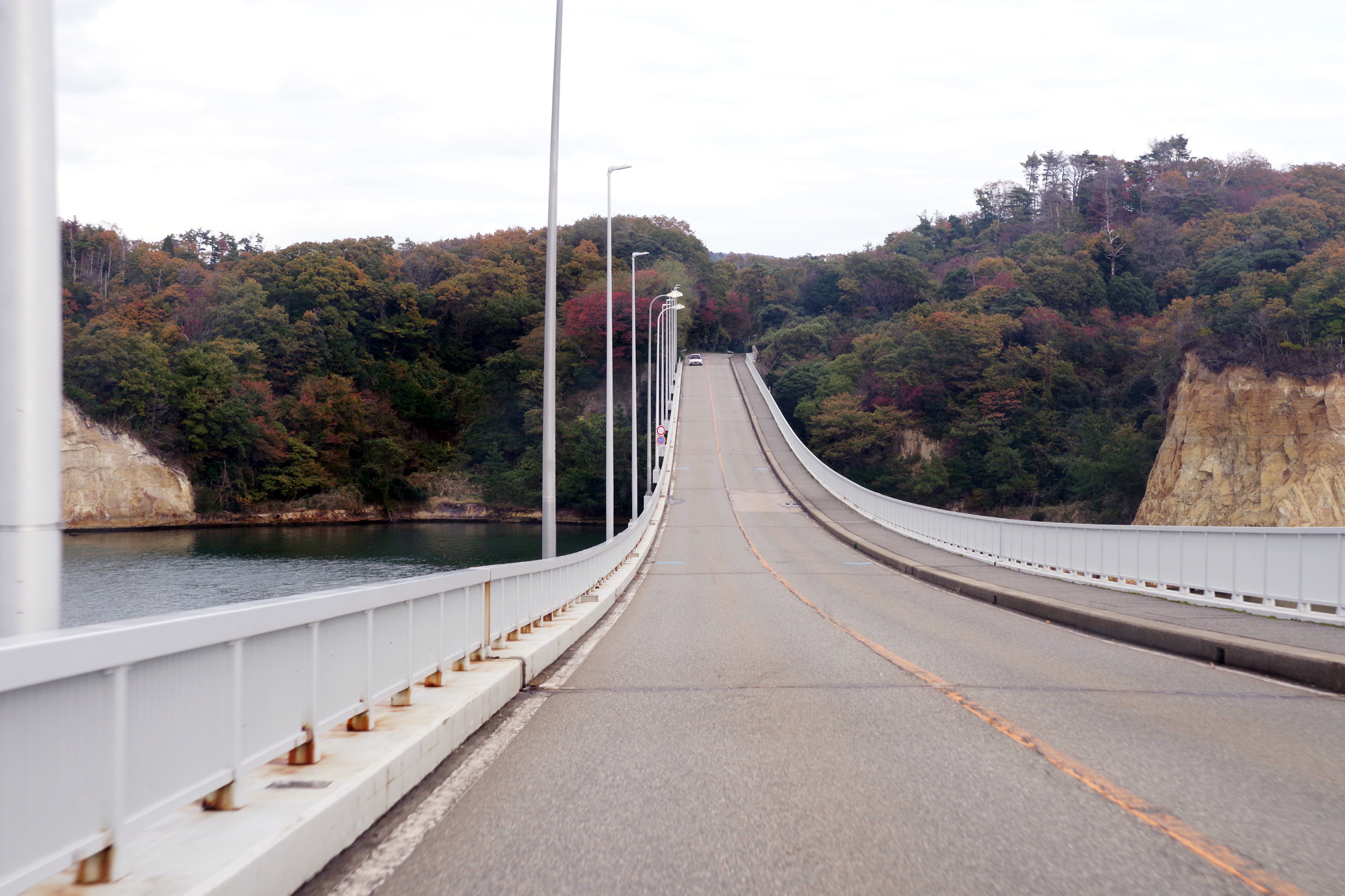 能登島へは、七尾市から海に架かる「能登島大橋」を渡って行きます。