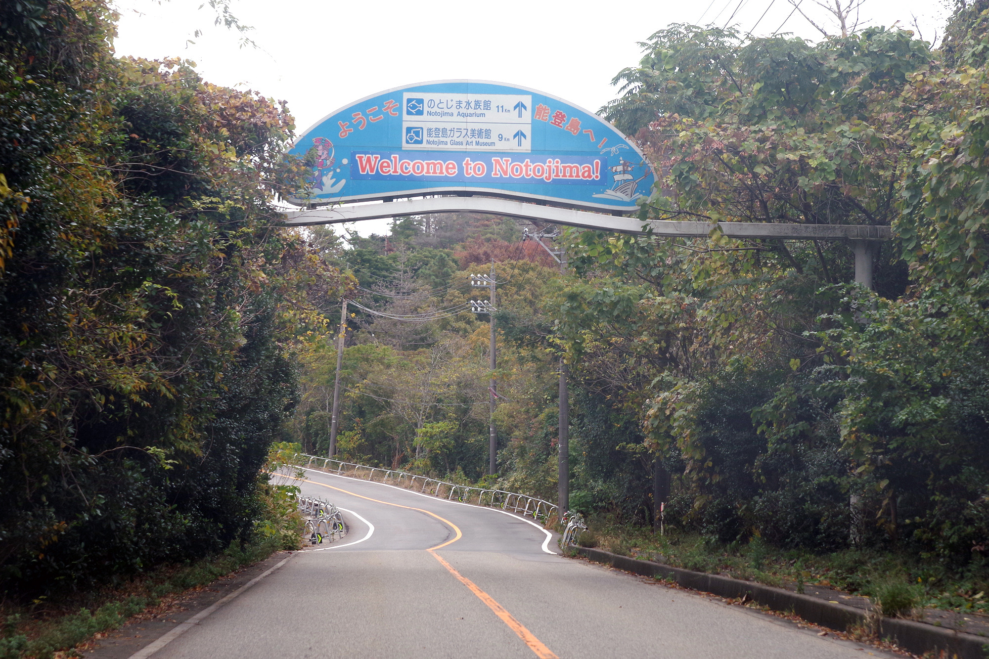 能登島大橋を渡ると、アーチ状の看板が歓迎してくれます。