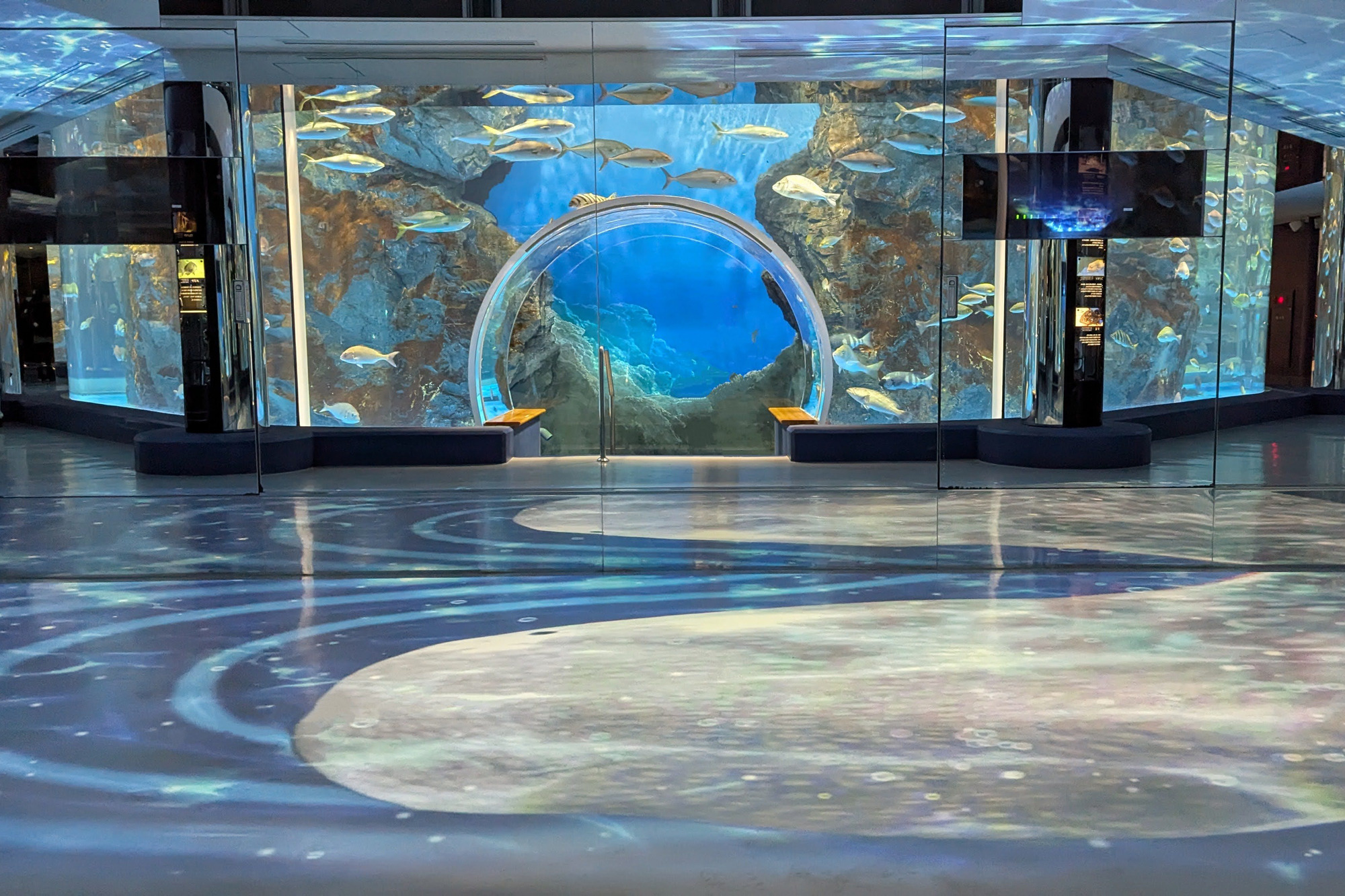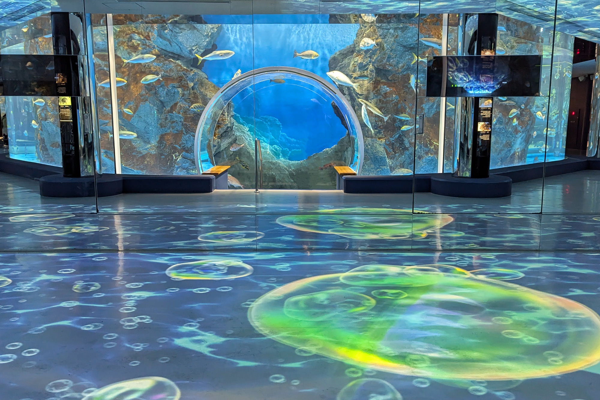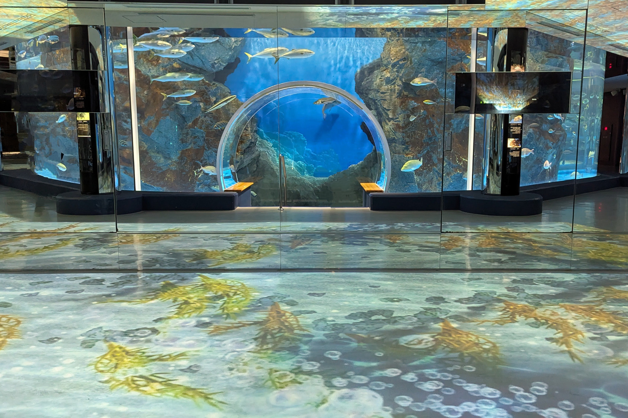 ここでは、日本海側の水族館としては初めてとなるプロジェクションマッピングが投影されています。