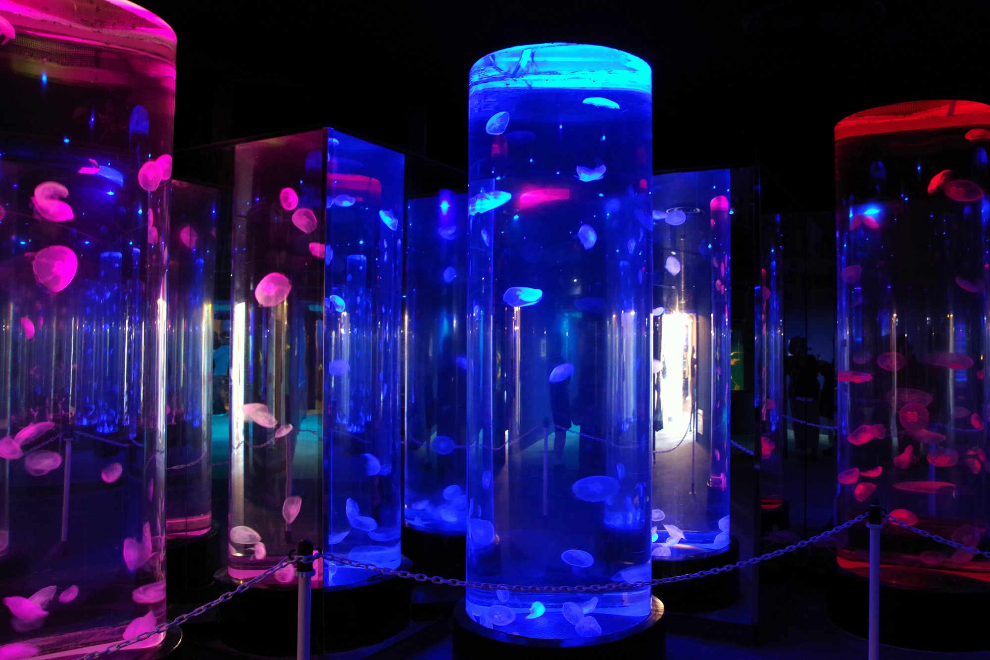 さらに、神秘的なクラゲを展示している空間「クラゲの光アート」も。