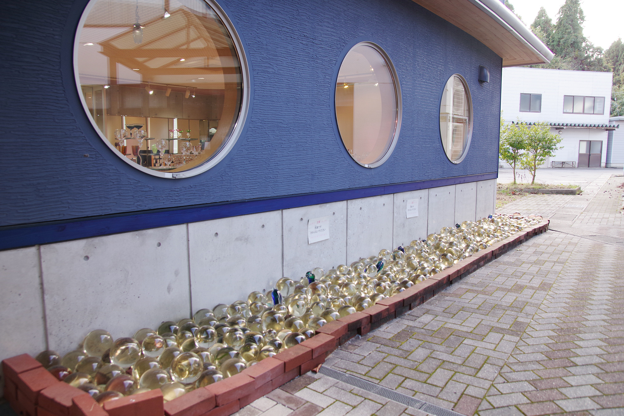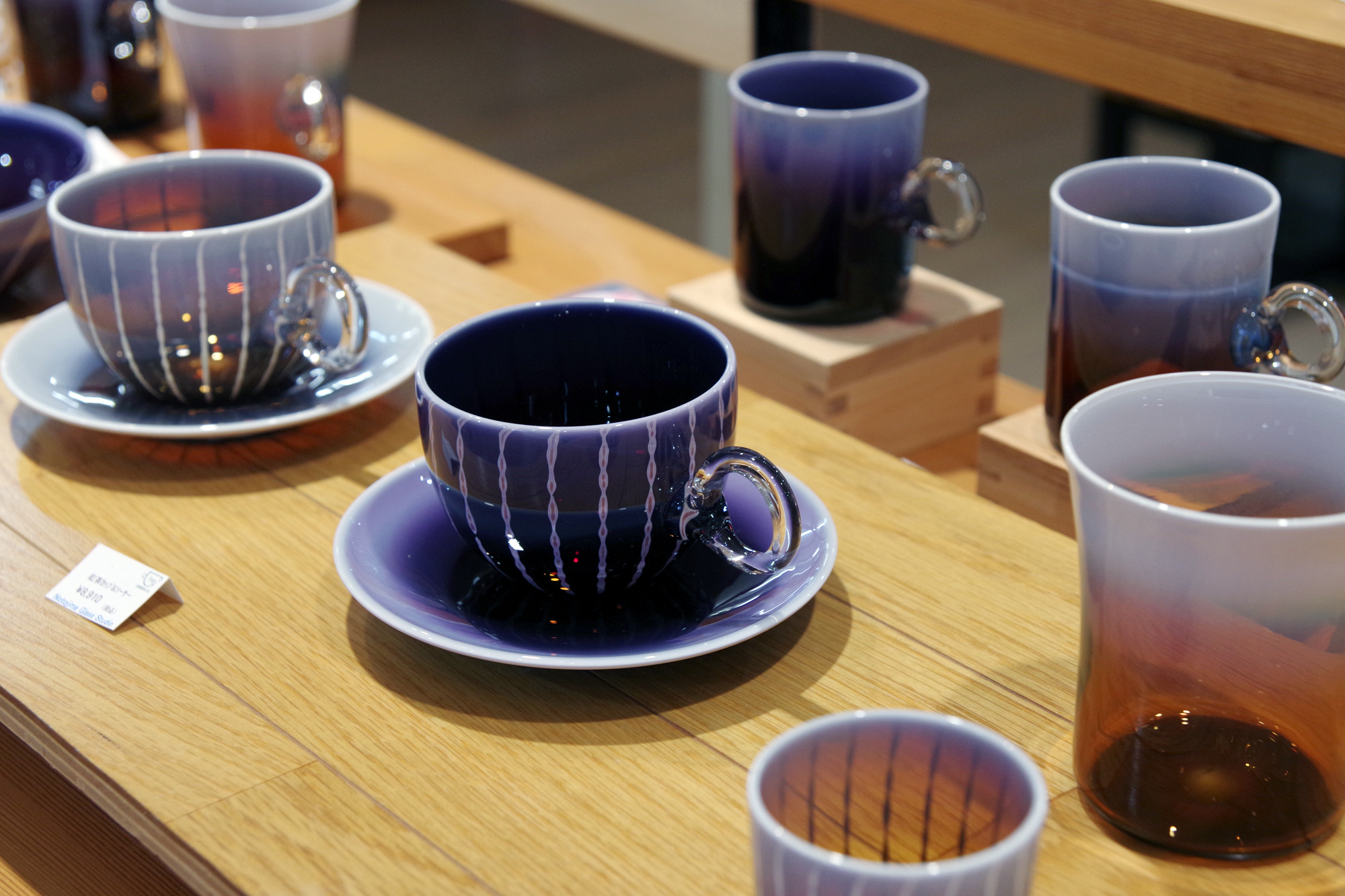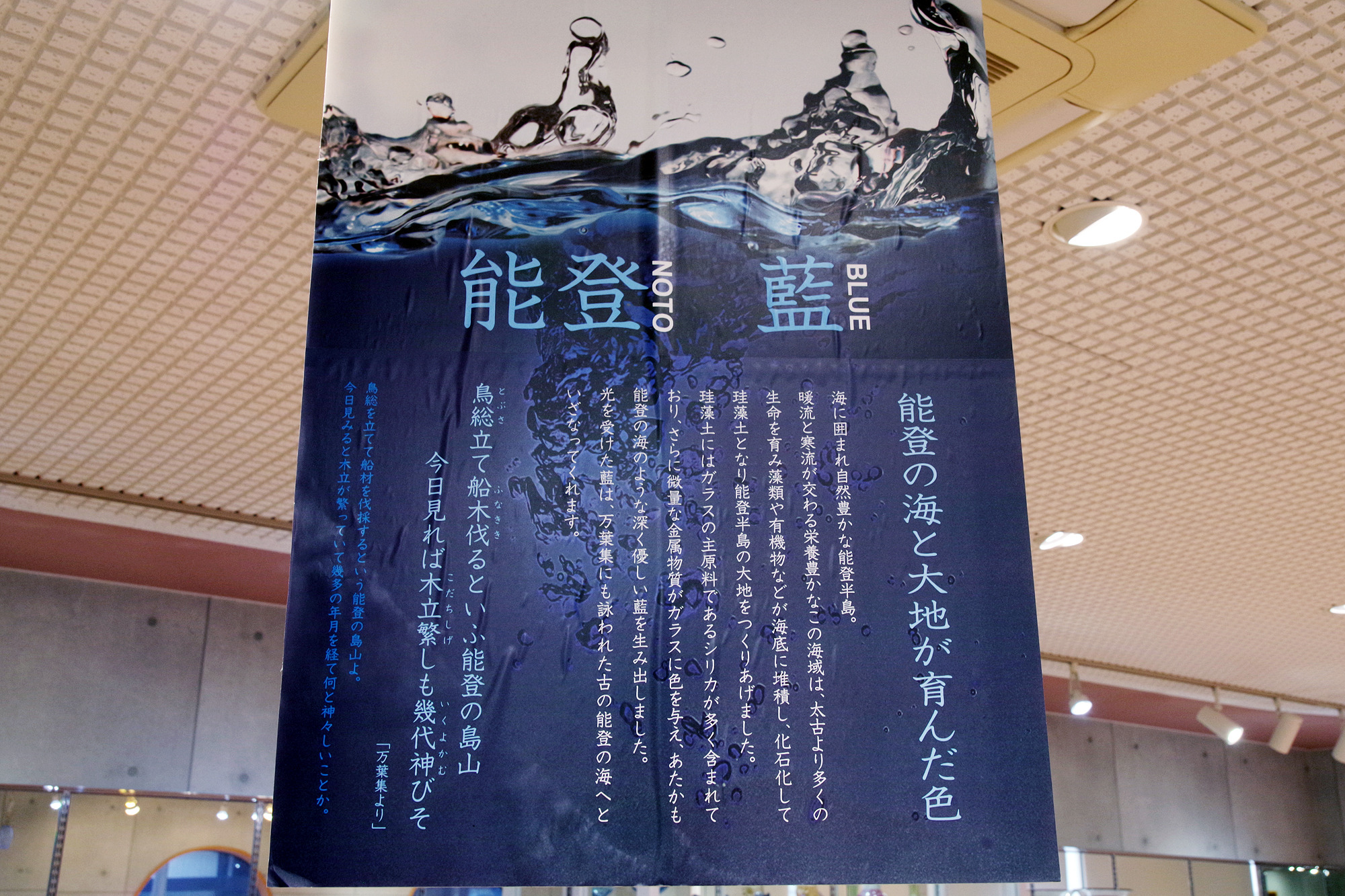 能登の珪藻土を使った「能登藍(NOTO BLUE)」のガラスは、能登の海の色そのもの。